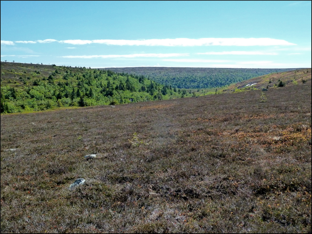 ”Kände tyvärr fortfarande av den onda höften, men det gick bättre med stavarna upp till Stor-Närfjällets topp (931 m ö h). Småspovarna följde mig hela vägen och avlöstes så småningom av fler par längs vägen. En gök och två dalripor förgyllde även denna strålande soliga dag, med lite kylig vind men bara enstaka avlägsna stackmoln.”