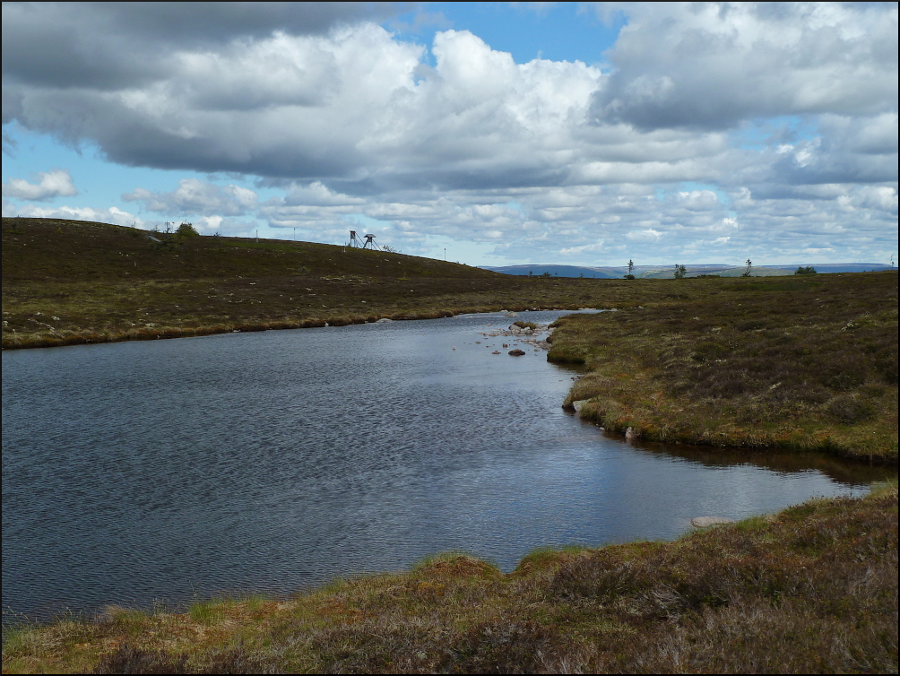 ”Bar med vatten från älven, då leden var snustorr. Tvingades dock tulla på vattnet och chansade på att den blå pricken på kartan vid stugan inte var ett tryckfel utan en källa kanske. Ja, så äntligen 95 käppar senare öppnade sig äntligen vyn norrut, stuga fanns på en härligt öppen ljunghed. Den blå pricken var faktiskt vatten, en liten myrgöl för kokvatten.”