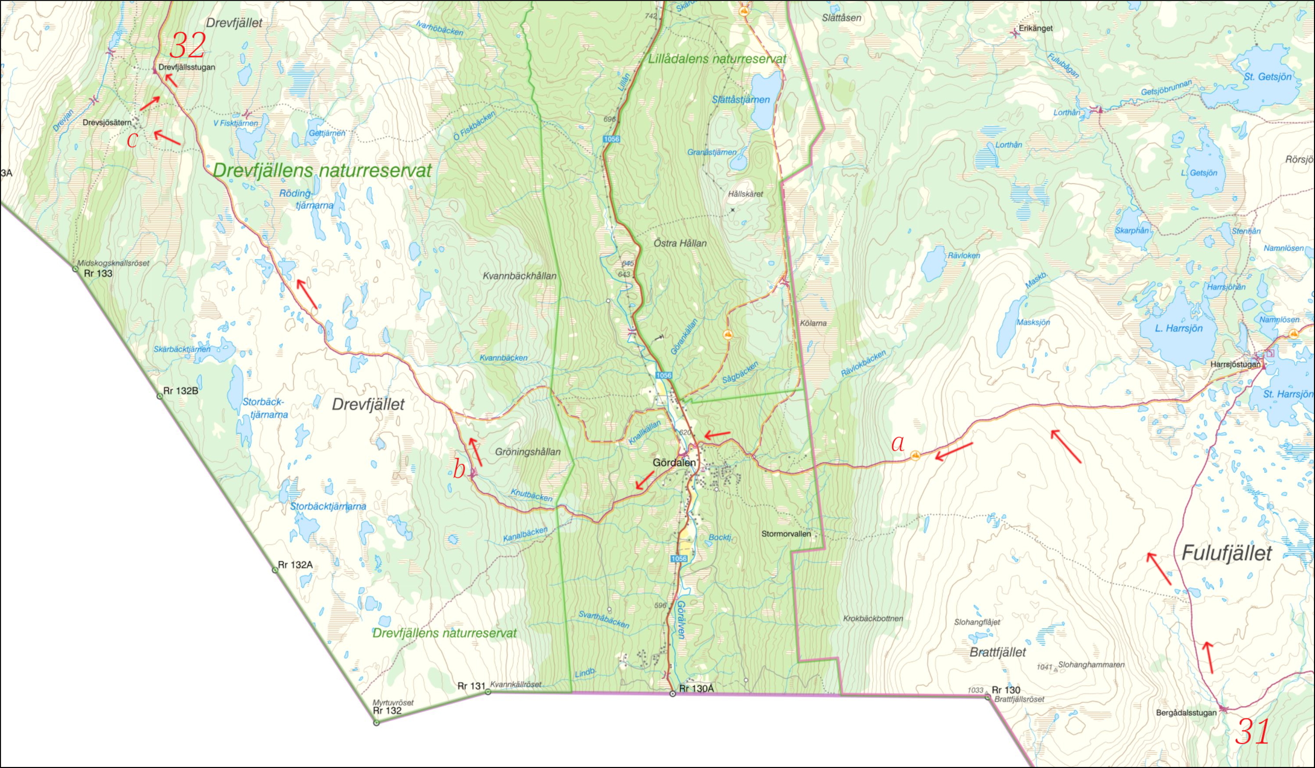 Flygfoton och kartor från Lantmäteriets kartdatabas, övriga foton lånade från Fulufjällets nationalpark och Drevdagens naturreservat.