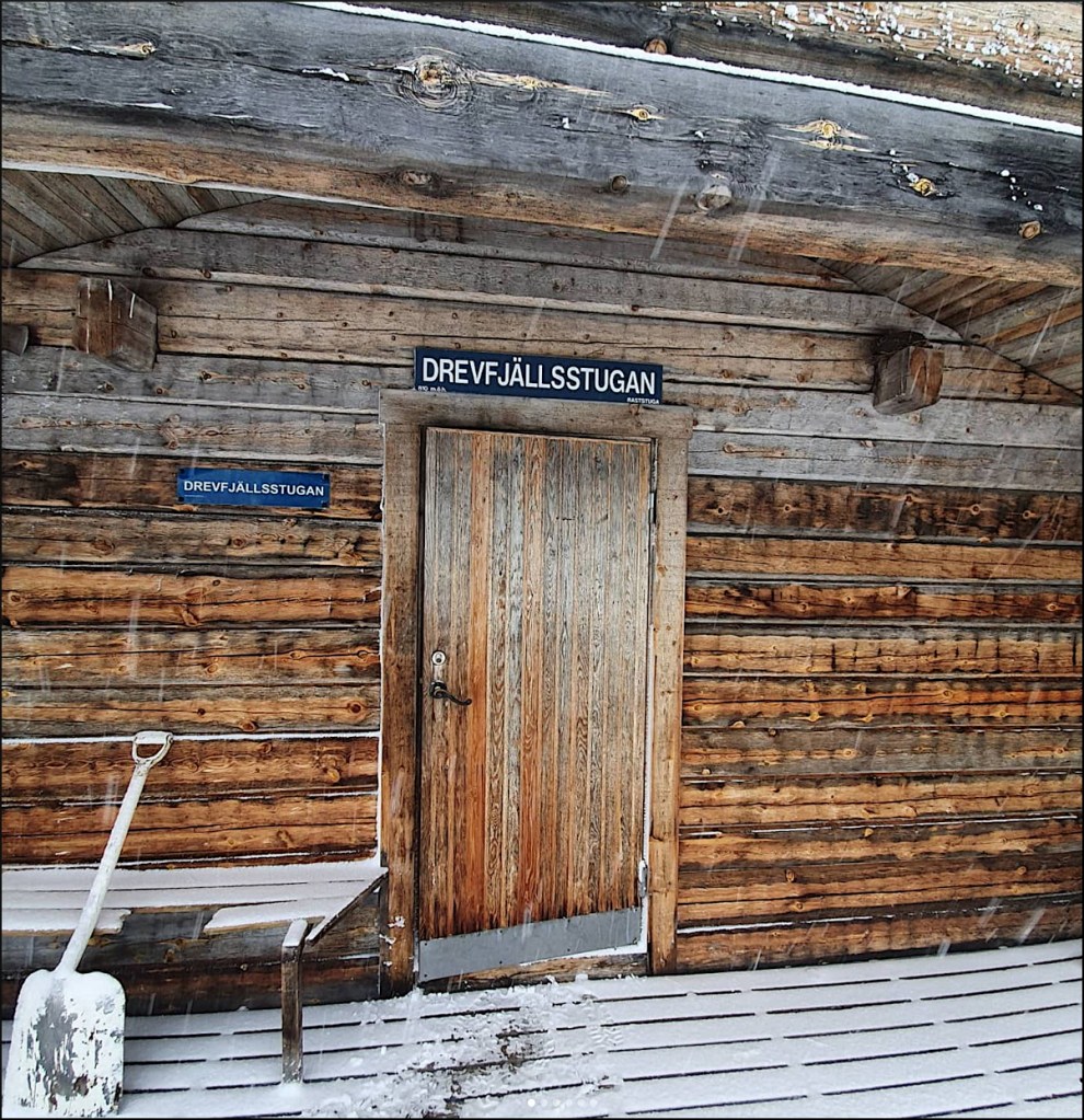 ”Bara att bita i, det var ju ändå +7 grad C inne i stugan. Började med att sätta igång en brasa i kaminen med den snustorra kluvna furan. En dryg timme senare var det behaglig +16. Tog en iskall dassväng, hämta vatten, fixa frukost och hängde kängor på tork. Sikten ute var inte mer än 500 meter och snöfallet obevekligt. Tättingar flög oroligt av och an framför fönstret, man hörde bara en bergfink som försökte starta motorn samt en avlägsen optimistgök. Resten var tyst och lugnt förutom kaminens drag.”