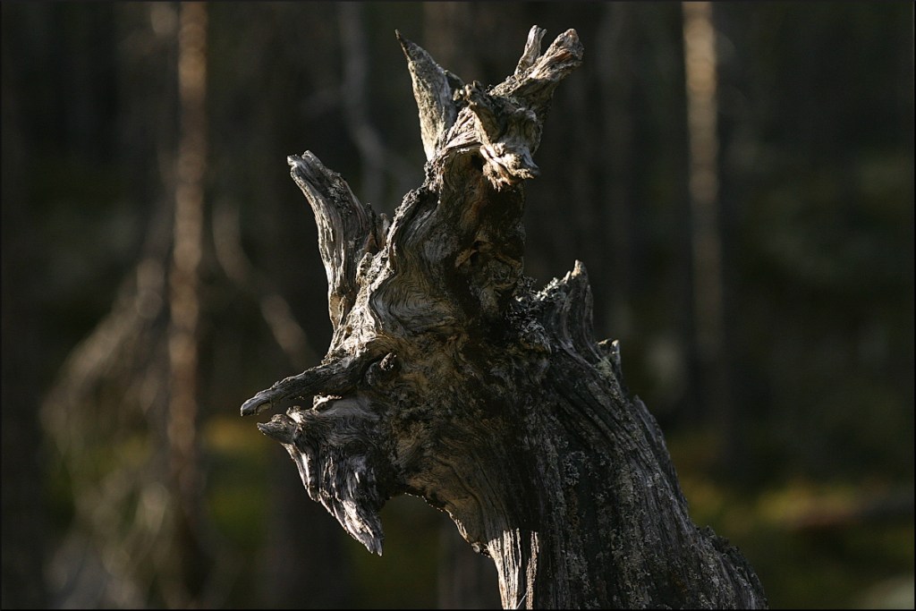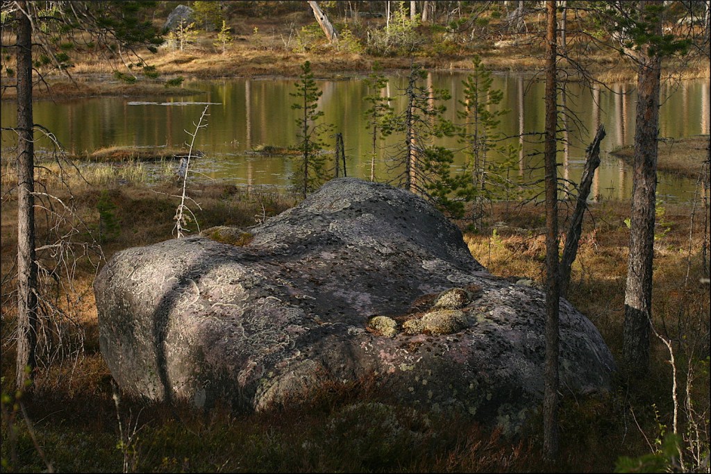 ”Fortsatte norröver och siktade på att luncha i vindskyddet hitom Gårdsjön (c). T:et var förresten ett par tranor som hördes när jag passerade en av många myrar med murkna kluvna stockar som spång, ett äventyr i sig bara! Här finns mycket att hämta om man skall konkurrera med norra Kungsleden, men det kanske är det som är charmen och sporten?!”