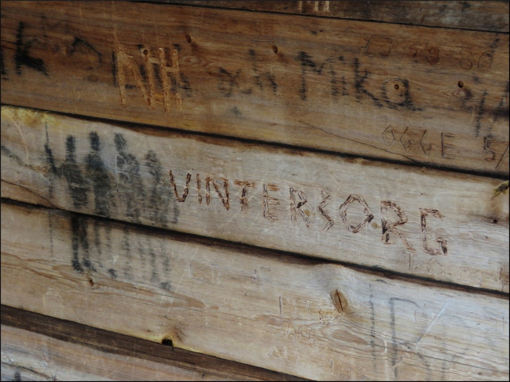 ”Tog en nötpaus i ledkrysset (a) där flockar av dagturister passerade mot Grövelsjön. Gick snett tillbaka ner mot sjön och stötte upp en ensam ren. Vid bron fanns en spångad kanotled. På andra sidan ett fint vindskydd med ved, yxa och såg.”