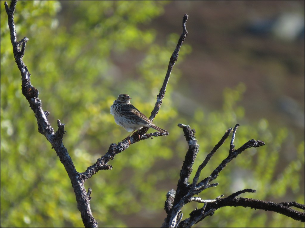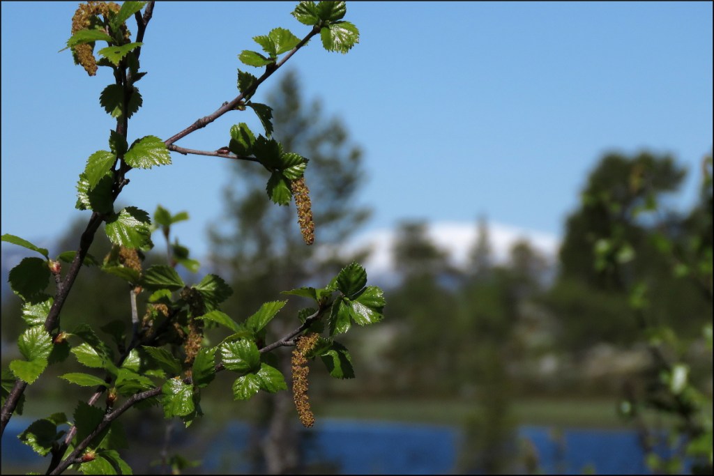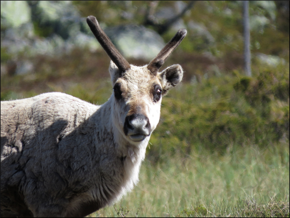 ”Sjönk ner mot en sten och njöt av motljuset, nyutslagna björkar och renar som betade av kanterna. Två flockar om 10-15 djur som spanade på varandra och höll sig på var sin kant. Flera årskalvar, från vitt till chokladbrunt. Ängspiplärka och sädesärla underhöll.”