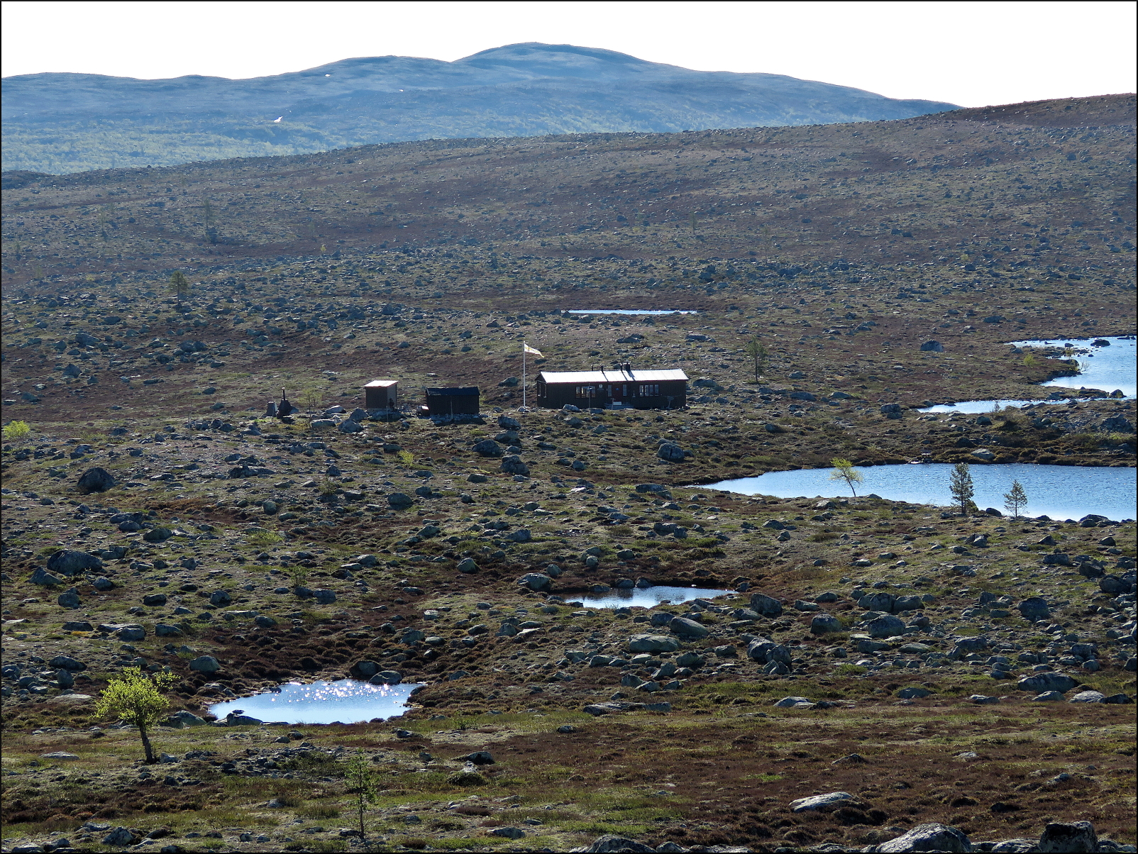 ”Vakna redan vid 4-tiden av att solen stråla in i min kupé. Kollade ut, bara ett par moln, annars klarblå himmel. Vila lite till och smög sen ut på dasset i den lite krispiga morgonvinden. Hämta kamera och jacka för att spana lite från höjden söder och väster om stugan.”