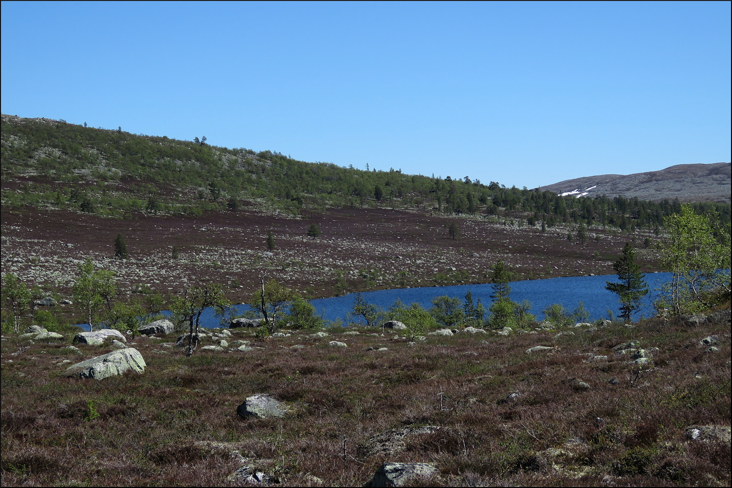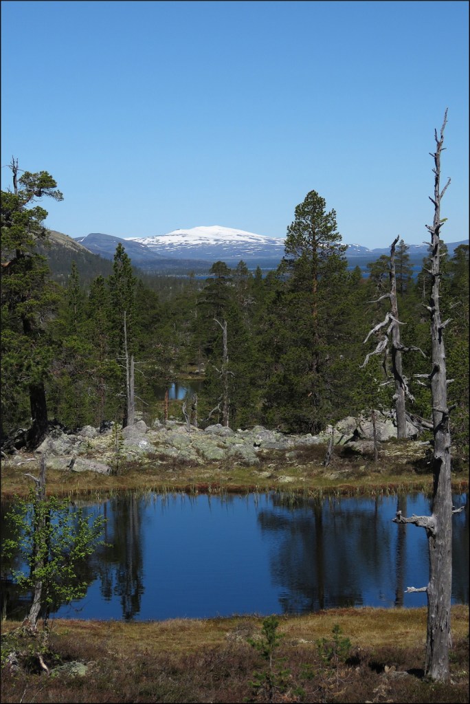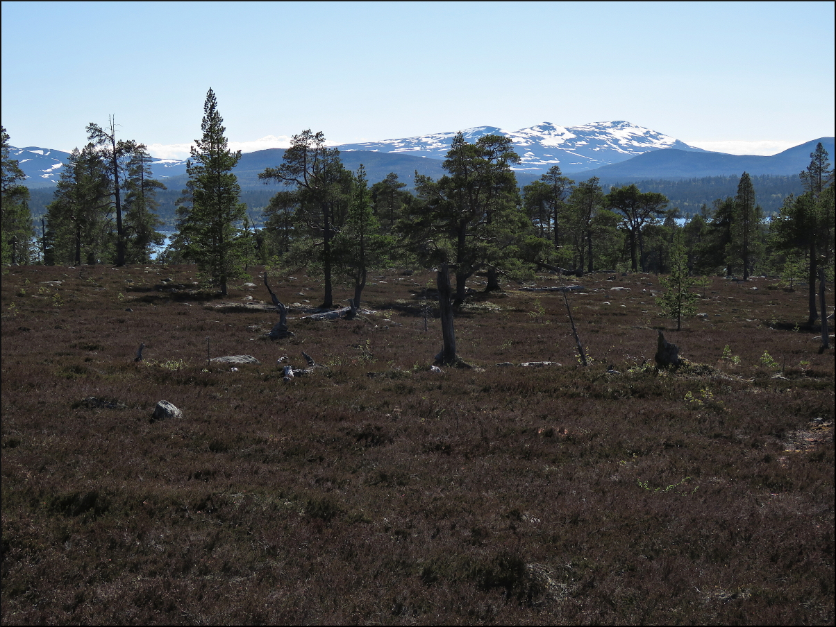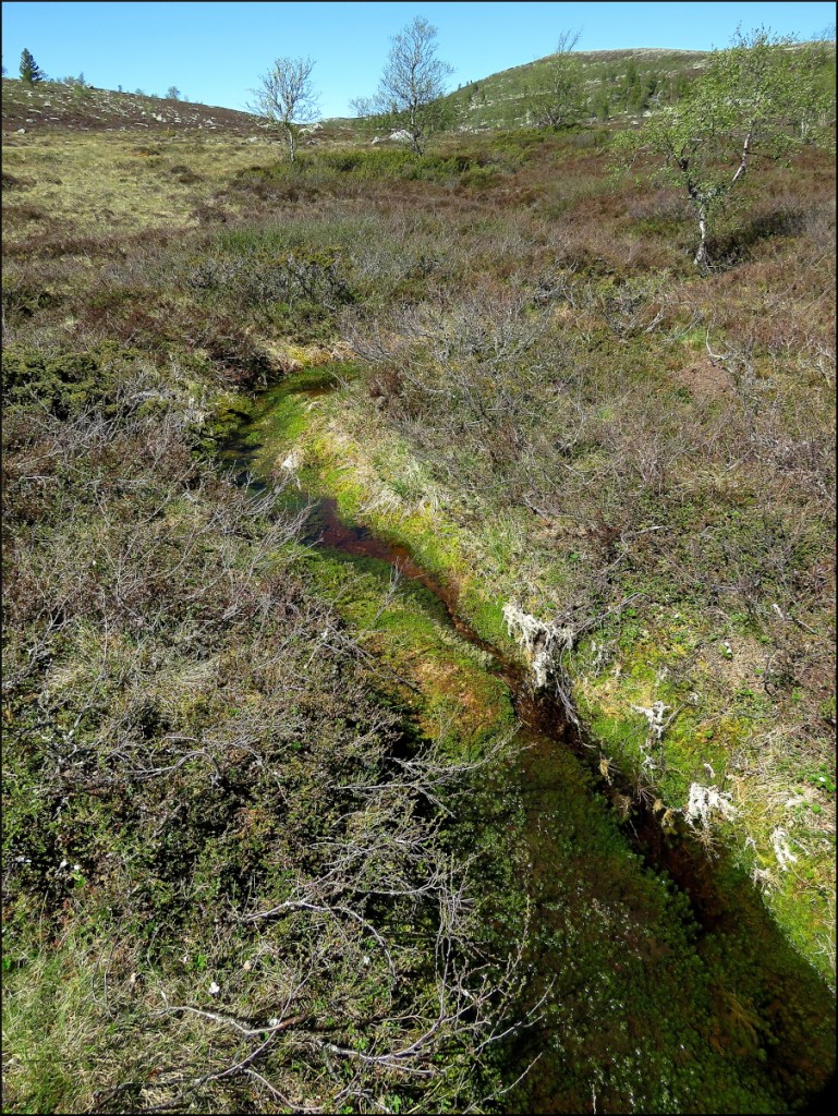 ”Stigningen upp till Tandsjövålen (d) (994 m ö h) blev en seg mjölksyrapärs. Hittade en liten kallkälla i vitmossan. Drack och fyllde på till lunch.”