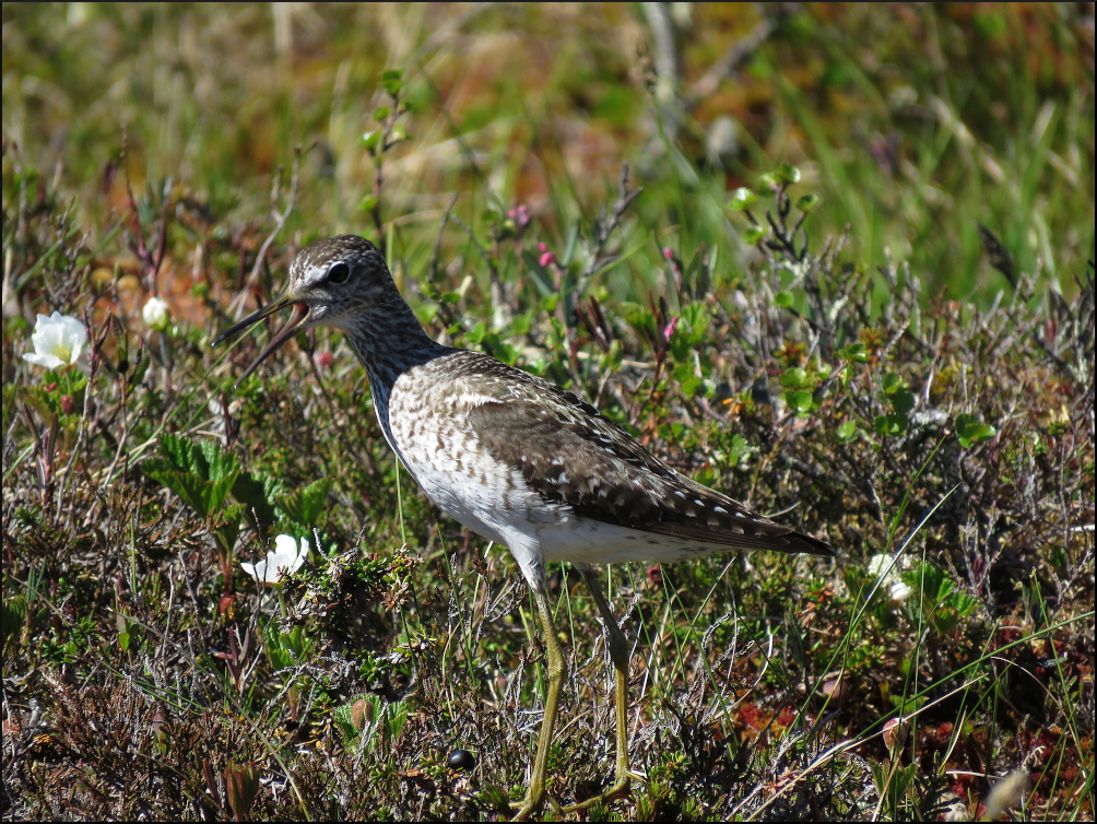 ”Stannade vid en större myr (a) för att försöka fota ljungpipare i motljus, samt andra ljusskygga vadare. Rödbena och gluttsnäppa lyckades jag identifiera via kameran, resten får analyseras till kvällen.”