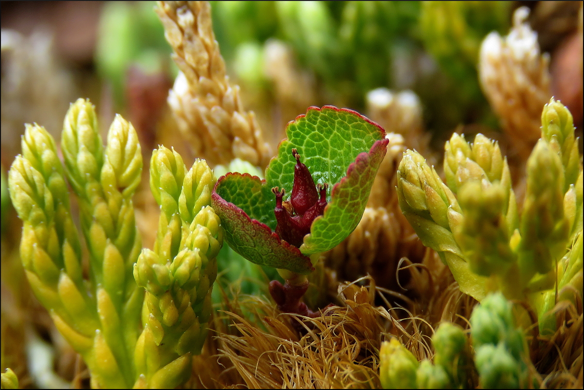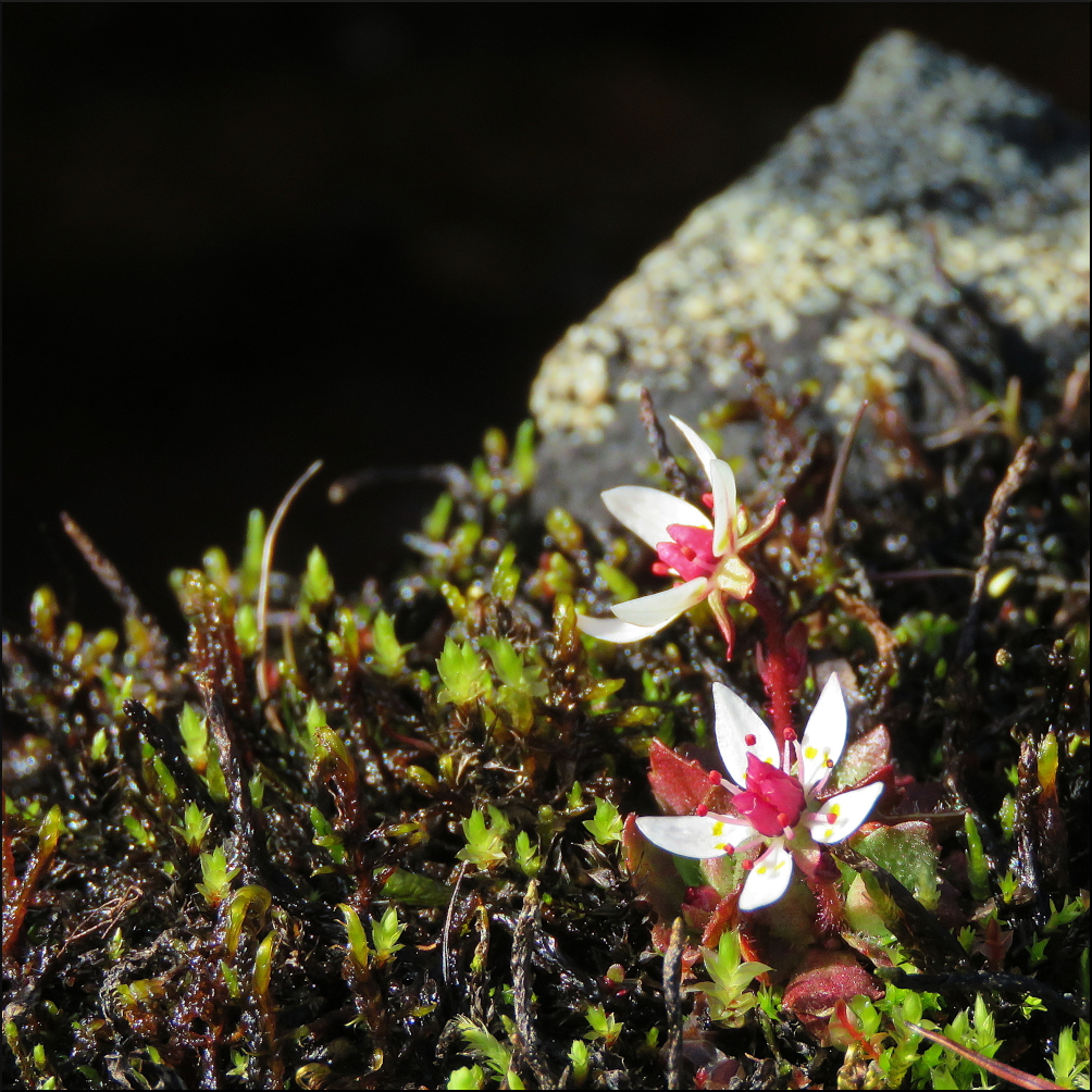 ”Rörde på mig lite för värmens skull, men det blev mest att hitta lä och fota blomster i makroläge. Hittade fina småblomster runt bäcken och tränade på vattenfoto. Kröp in i tältet när det kom lite regnstänk. Det klarnade upp något, så jag kunde skriva dagbok från en sten. Handstilen dock inte den bästa, frös i vinden som inte ville ge sig. Skrev det sista i tältet före läggdags vid halv tio, med förhoppningen att förkylningen släpper imorgon….”