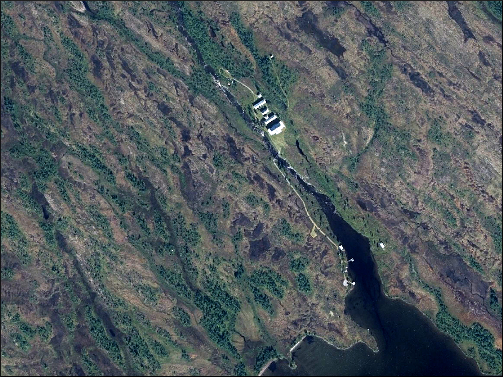 ”Tog en redig lunch frystorkat på nervägen mot Rensjösätern. Ladda inför uppstigningen mot Västra Middagsfjället (912 m ö h), 300 höjdmeter att ta. Nerfarten mot bron vid sätern gick snabbt, mest tack vare fina torra myrängar. Såg tre misstänkta gamla björnskitar, annars bara färska spår efter ren och älg. Sätern var den från TV berömda jaktstugedrömmen, ett tiotal väldesignade hus, slottslikt, mitt i ingenstans. Märklig upplevelse! Ingen där nu, det mesta tillbommat och låst. Endast det nybyggda utedasset, norr om husen var öppet. Fin utsikt mot väster med öppen dörr. De rika fick bjuda på invigningen och toalettpapper.”