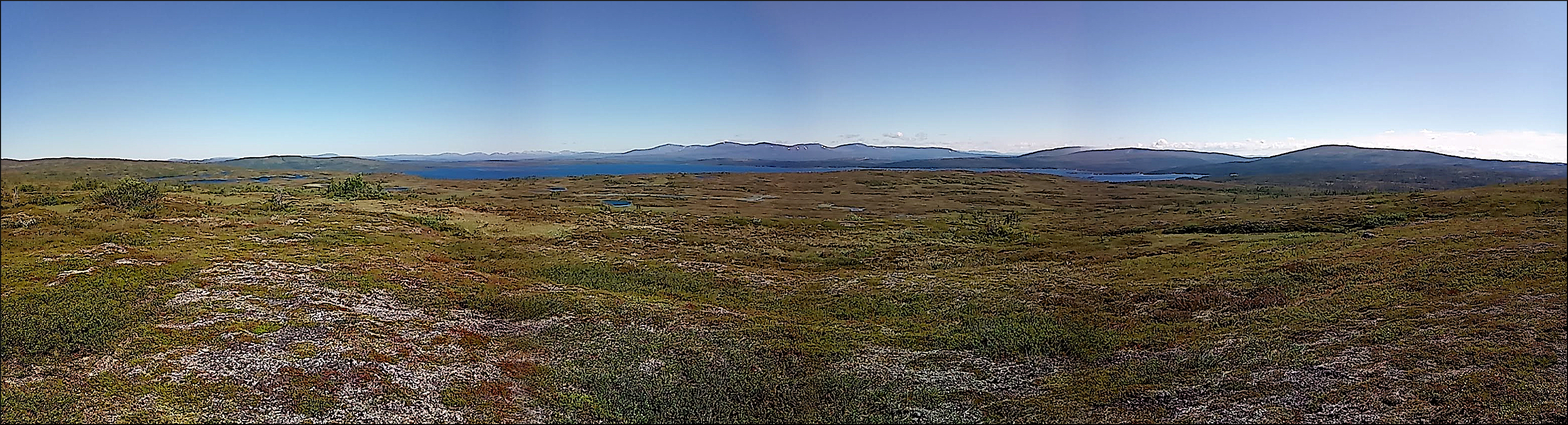 ”Höll en ganska rak kompassriktning mot Häggsjömusvaltjärnen. I en dunge på en kulle rusade en älg iväg framför mig. Lite kämpigt innan jag nådde krönet och kom ut på riktigt kalfjäll med utsikt över alla sjöar norröver.”