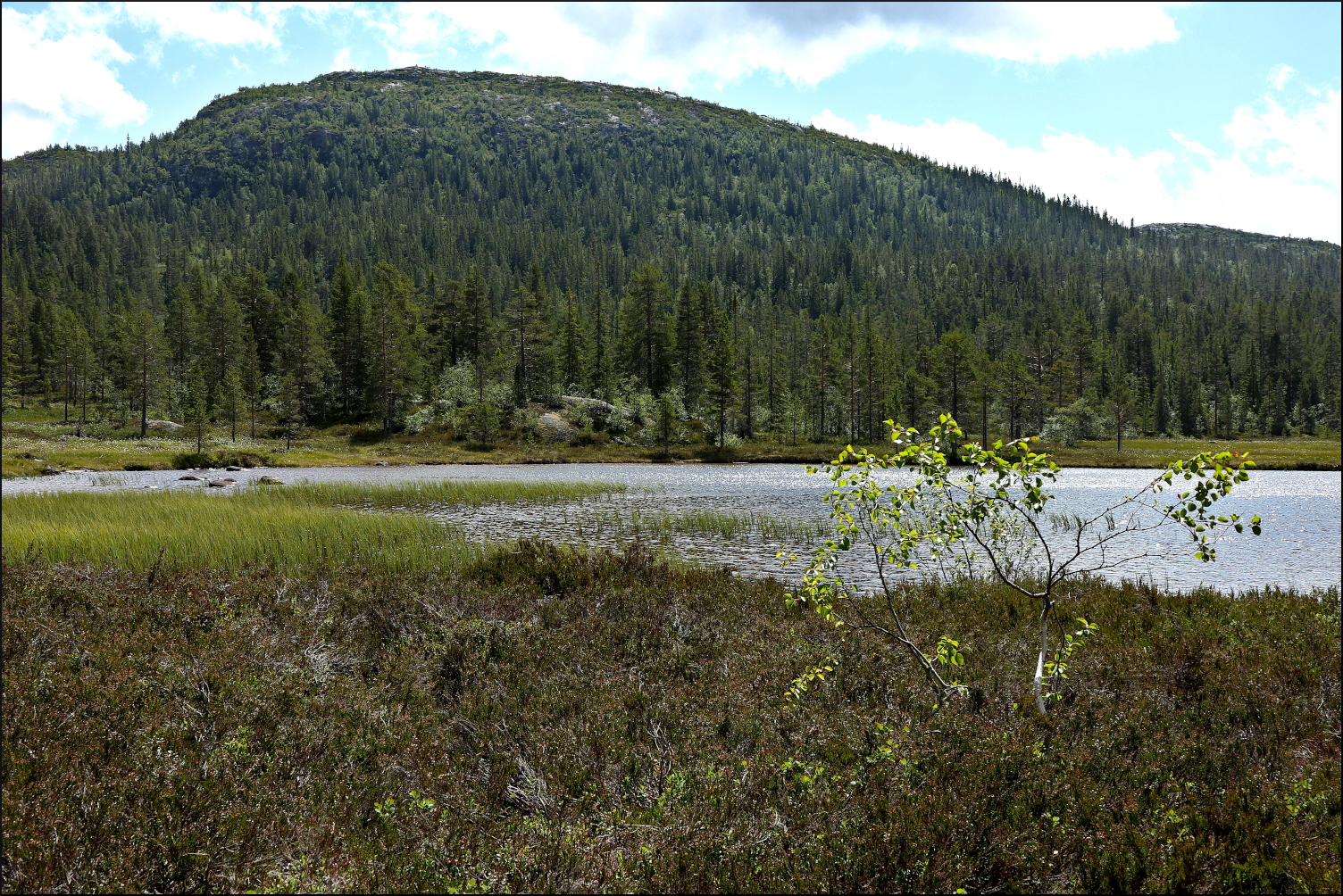 Dagen blev alltför varm och med en mycket krävande stigning mot slutet avbröt vi, efter en utförslöpa genom ormbunkstät skog, vid en fin bäck och sjö. Tog in platsen med en lång fika, medan hundarna kunde simma ut och kyla av sig i vattnet. Vi mötte inga Quislingar på hemvägen ……