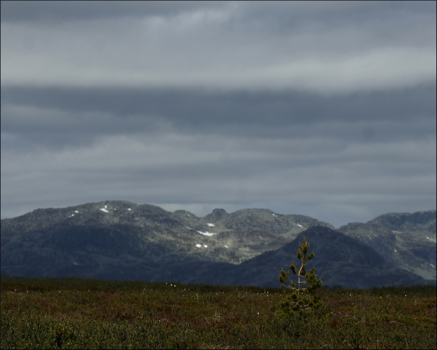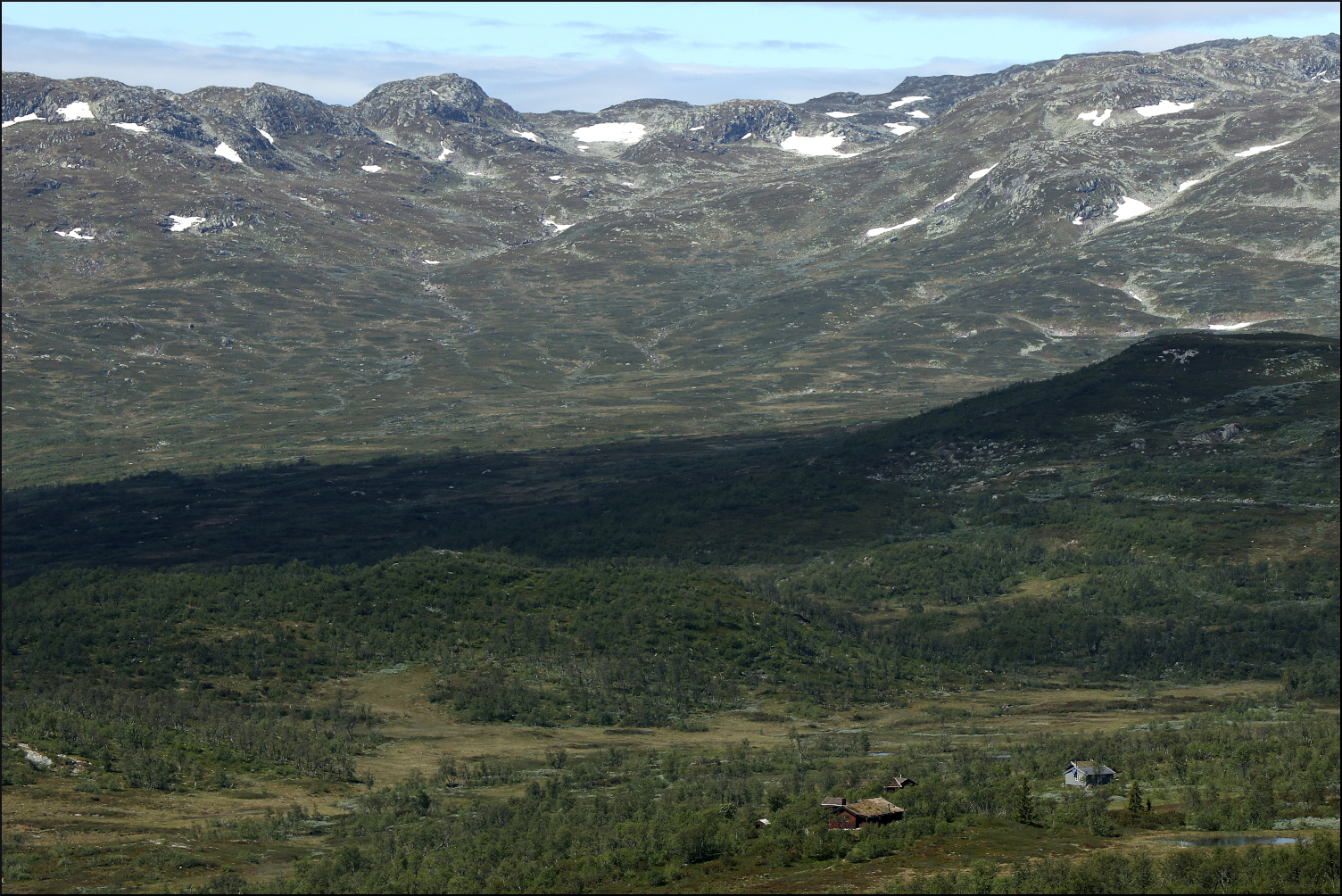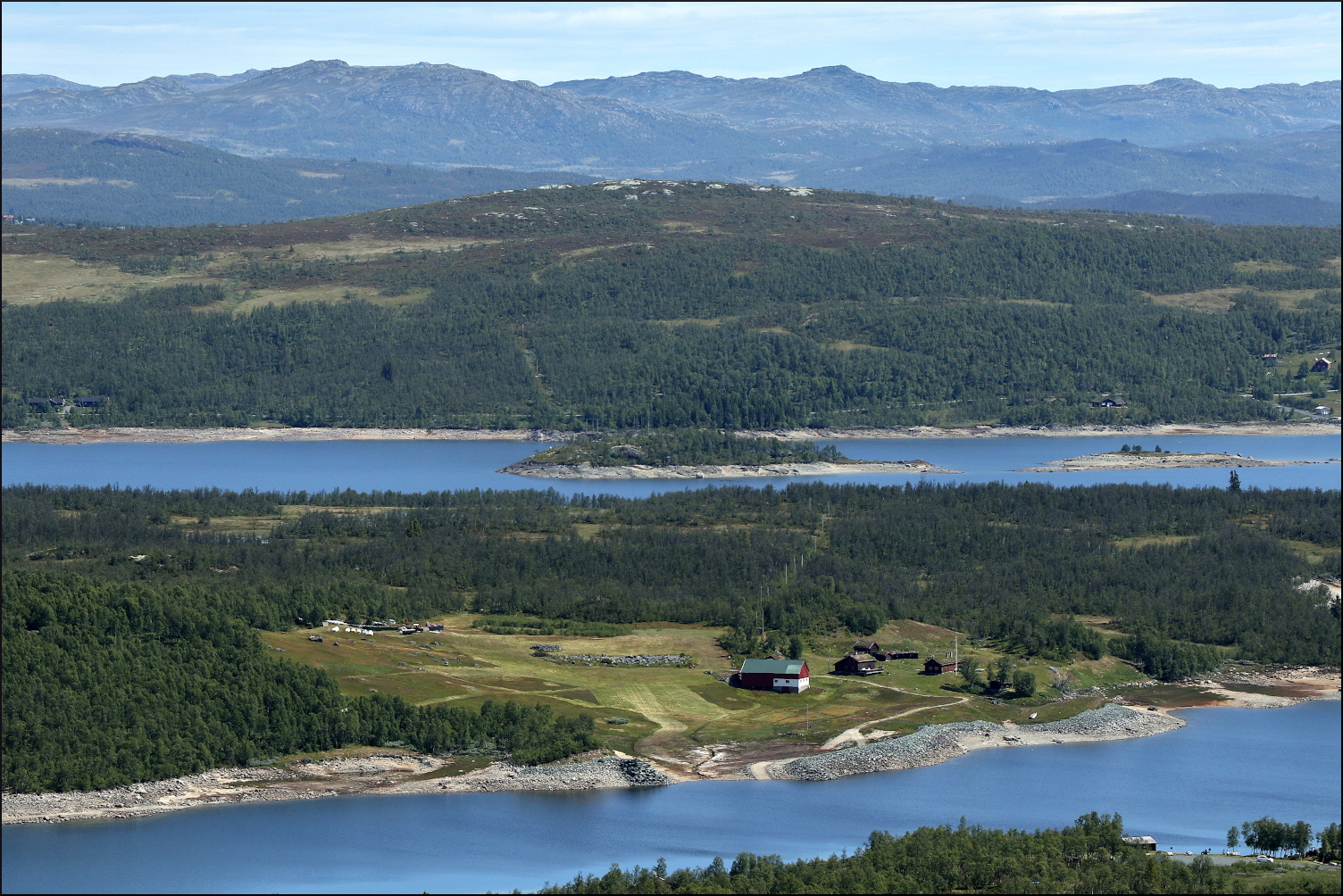Vädret denna morgon var totalt förändrat, sol och värme, bara svaga vindar. Från vår utgångspunkt vid den stora sjön Totak var det bara en kort bilresa mot Rauland och den välbesökta Falkenuten. En vidsträckt fjällhed där en gång falkenerare från Europa hade tillbringat somrarna, därav bergets namn. Turistströmmen var tidvis så kraftig att första delen av stigningen mot toppen var tillrättalagd av sherpas. Med stora stenblock hade man byggt en trappliknande led. Mindre slitage på naturen och samtidigt ännu mer lättillgänglig.