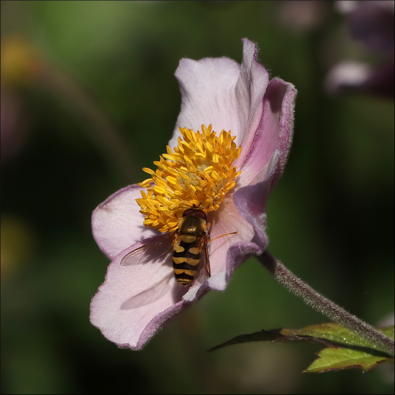 Höstanemoner är tålig, här på torpet har jag nog inte vattnat en enda gång. Härlig hemesterbildserie, den på klängena är ett konstverk och grattis till bilden av den flygande insekten!