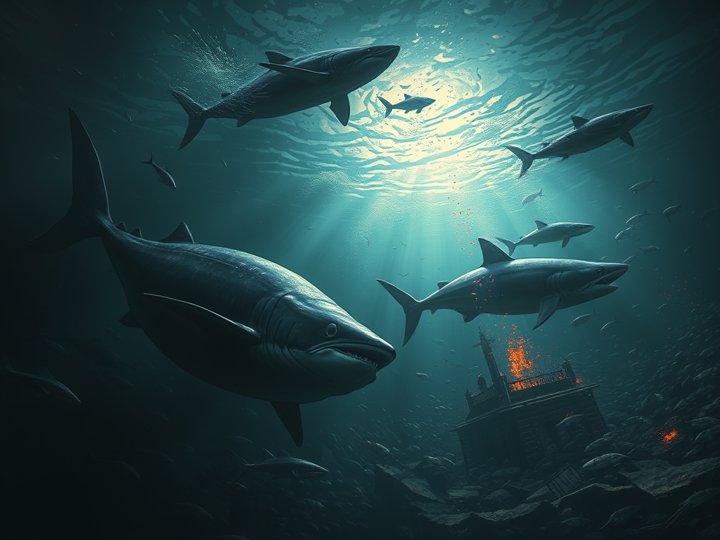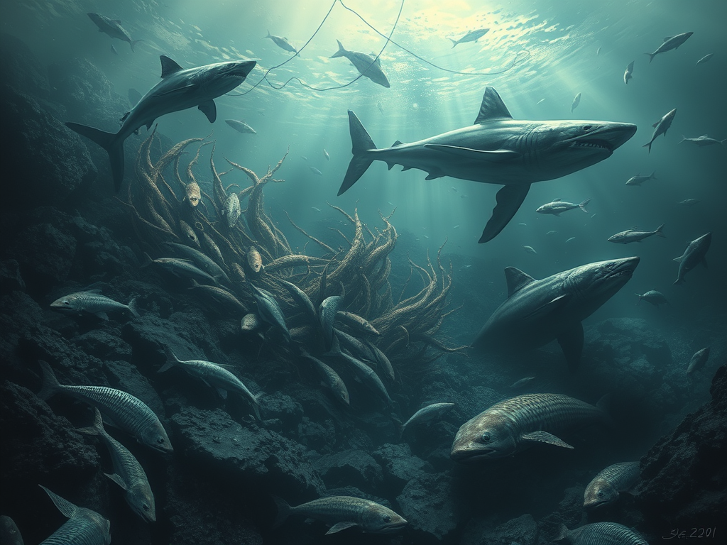 De ekologiska systemen kollapsade i de tropiska delarna av haven. Hela näringskedjor försvann med massdöd bland de största fiskarna, hajar och valar.