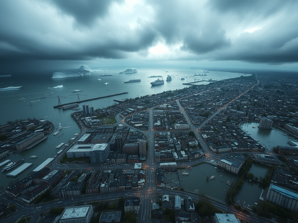 När Grönlands istäcke smälte bort och Antarktis istäcke reducerades till hälften steg haven med 3 meter vilket orsakade översvämningskatastrofer i samtliga städer längs kusterna jorden runt.
