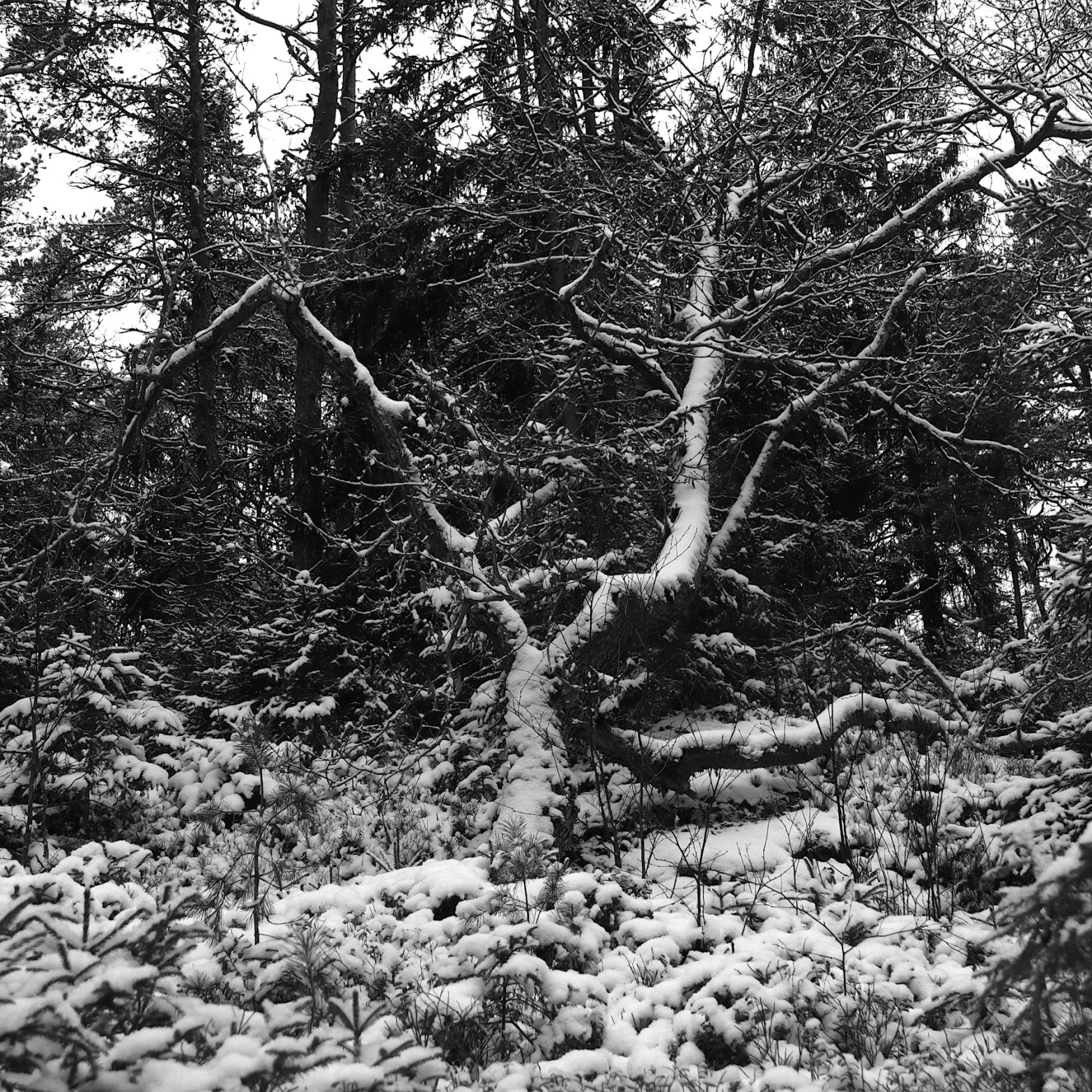 Denna dag 6 januari och trettondagen, blåste det inget och ett tunt snötäcke fanns kvar ute i skogen längs med löparspåret.