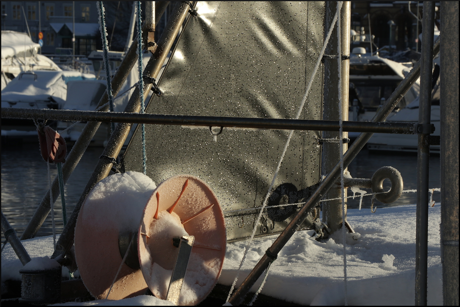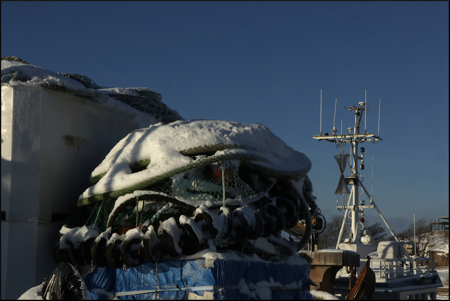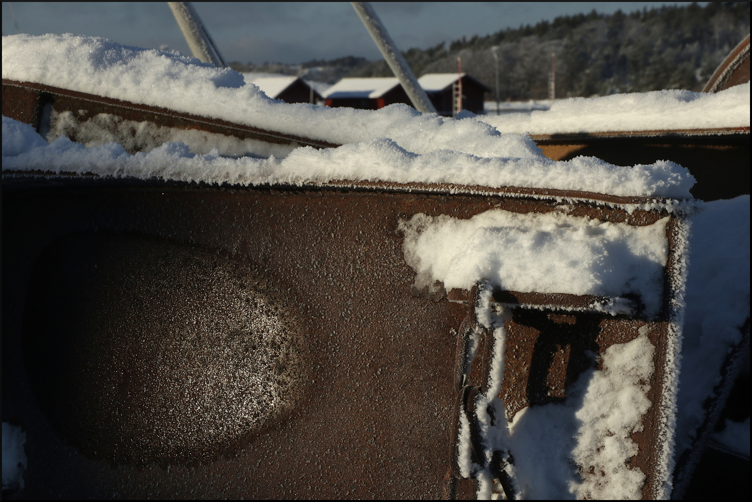 Yrkesfiskarna har semester, med rätta. Känns avlägset att bege sig ut i kylan även om havet ligger stilla och solsidan är tio grader ”varmare” än i skuggan. De mörka ytorna hämtar sig snabbast i solen, men min röda näsa återfår inte sin normala färg. Den är mer som båtskroven, frostnupen. Tinar dock snabbt över en kopp kaffe med semla.