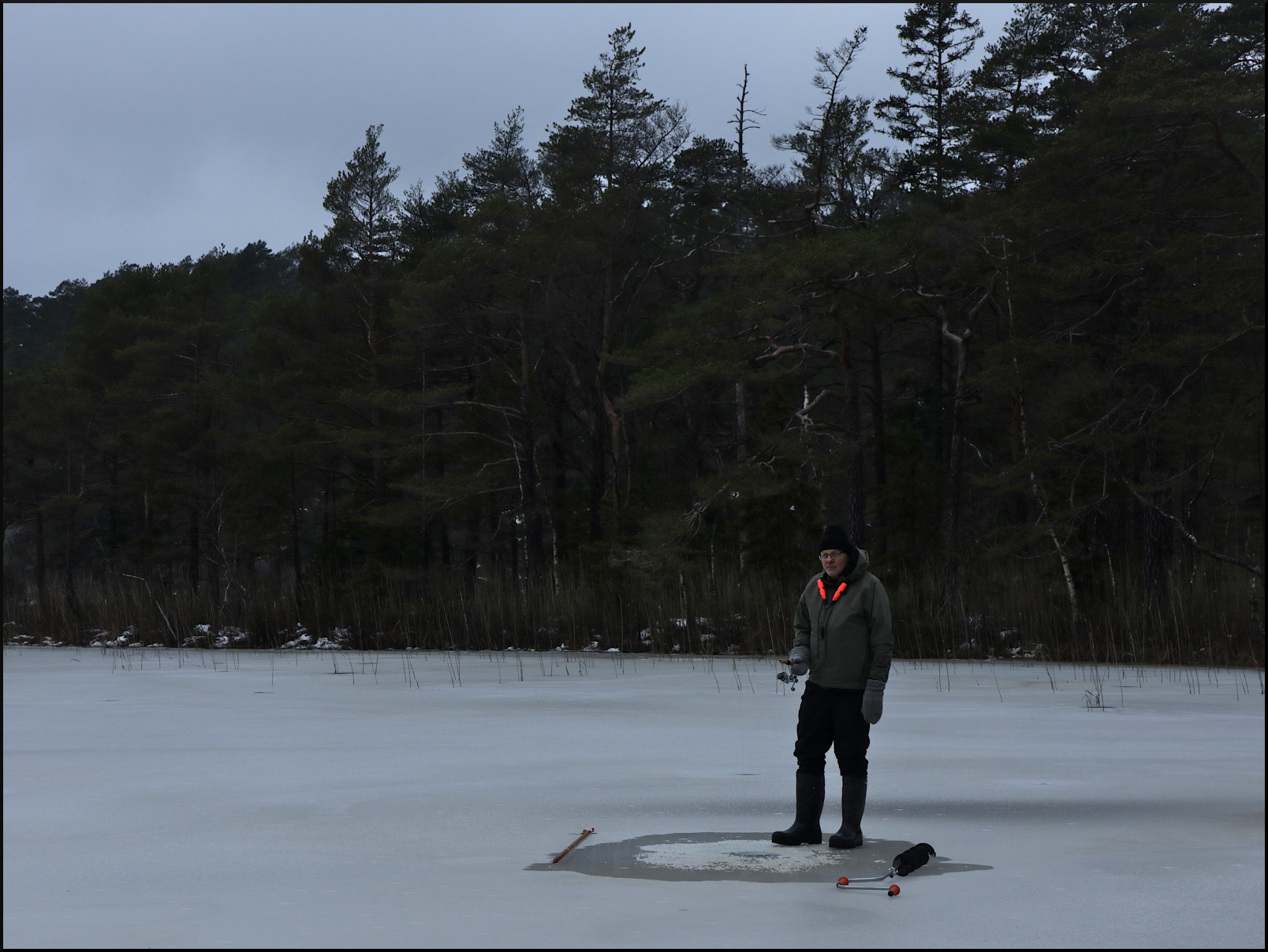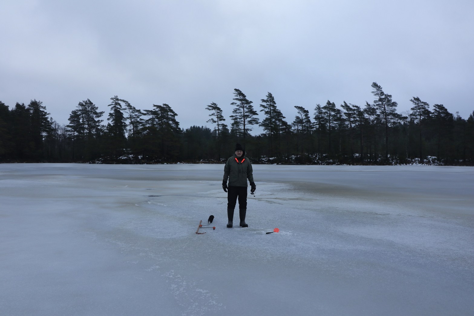- Utrustning: Ispik, isdubbar, isborr manuell, vinterstövlar stlk 45, fyra spön och maggot