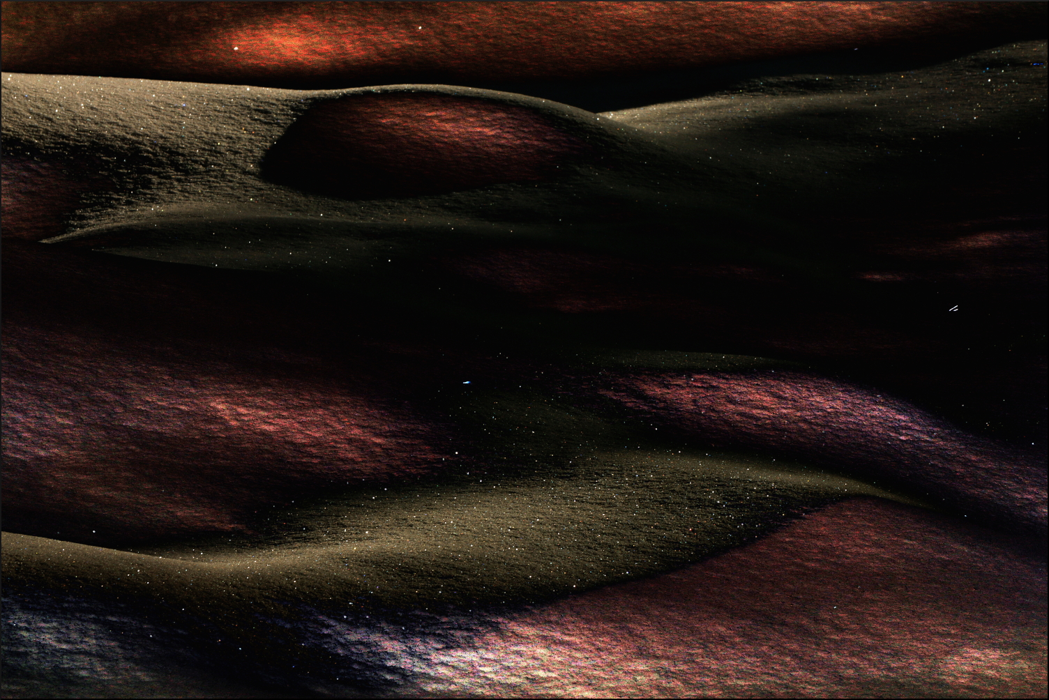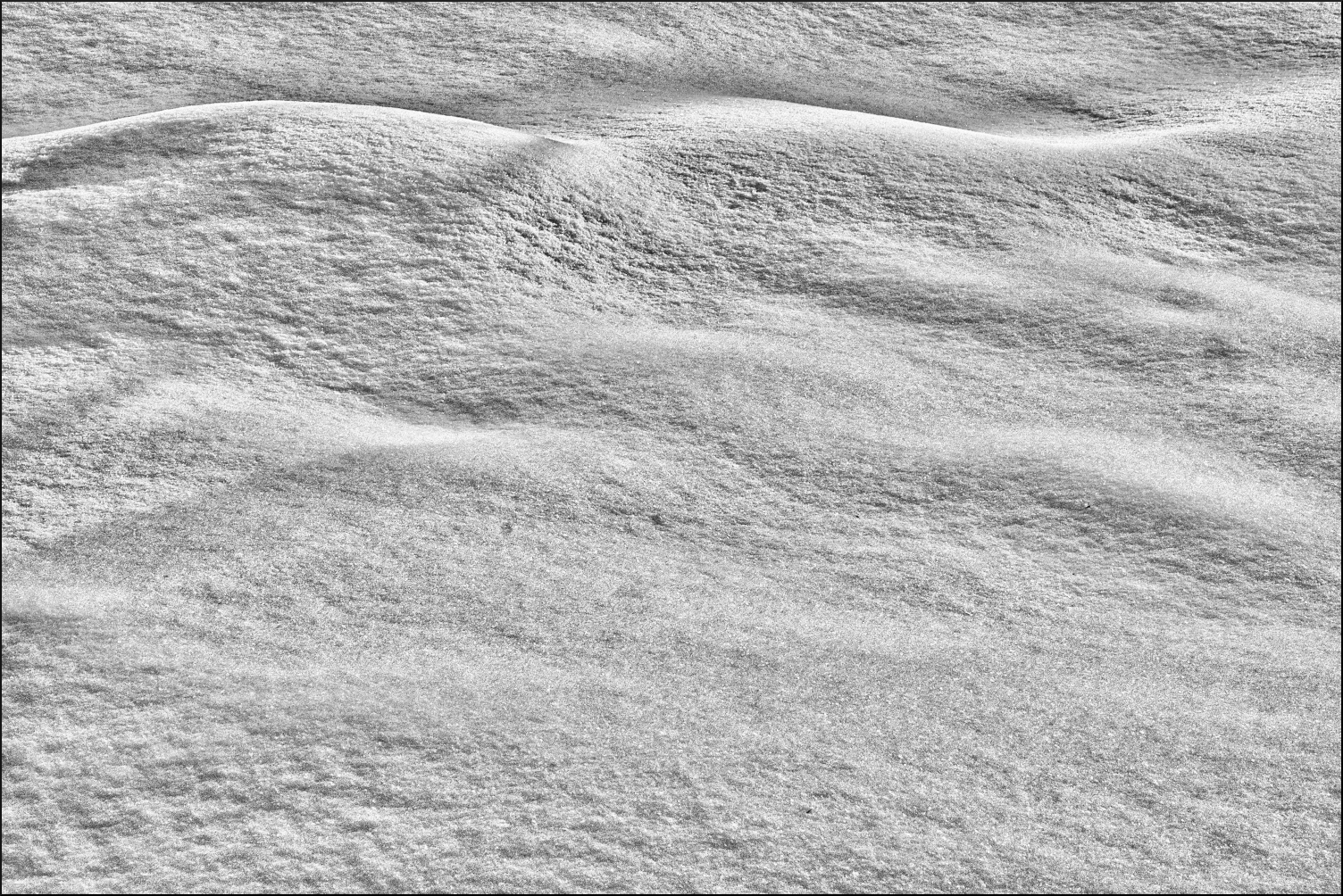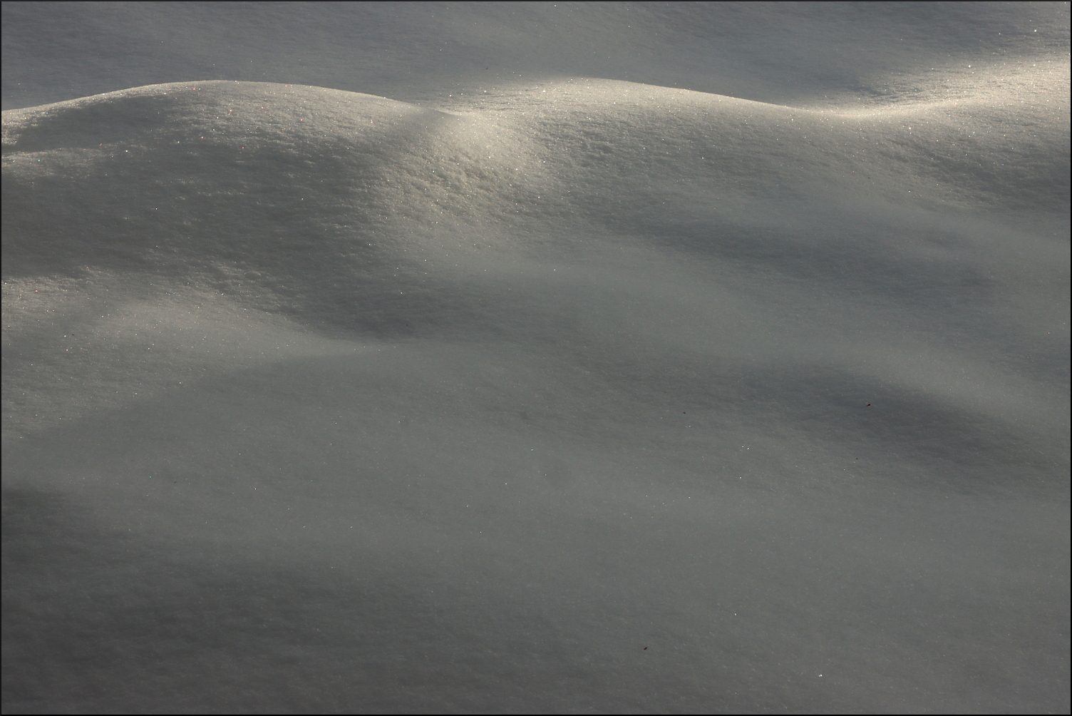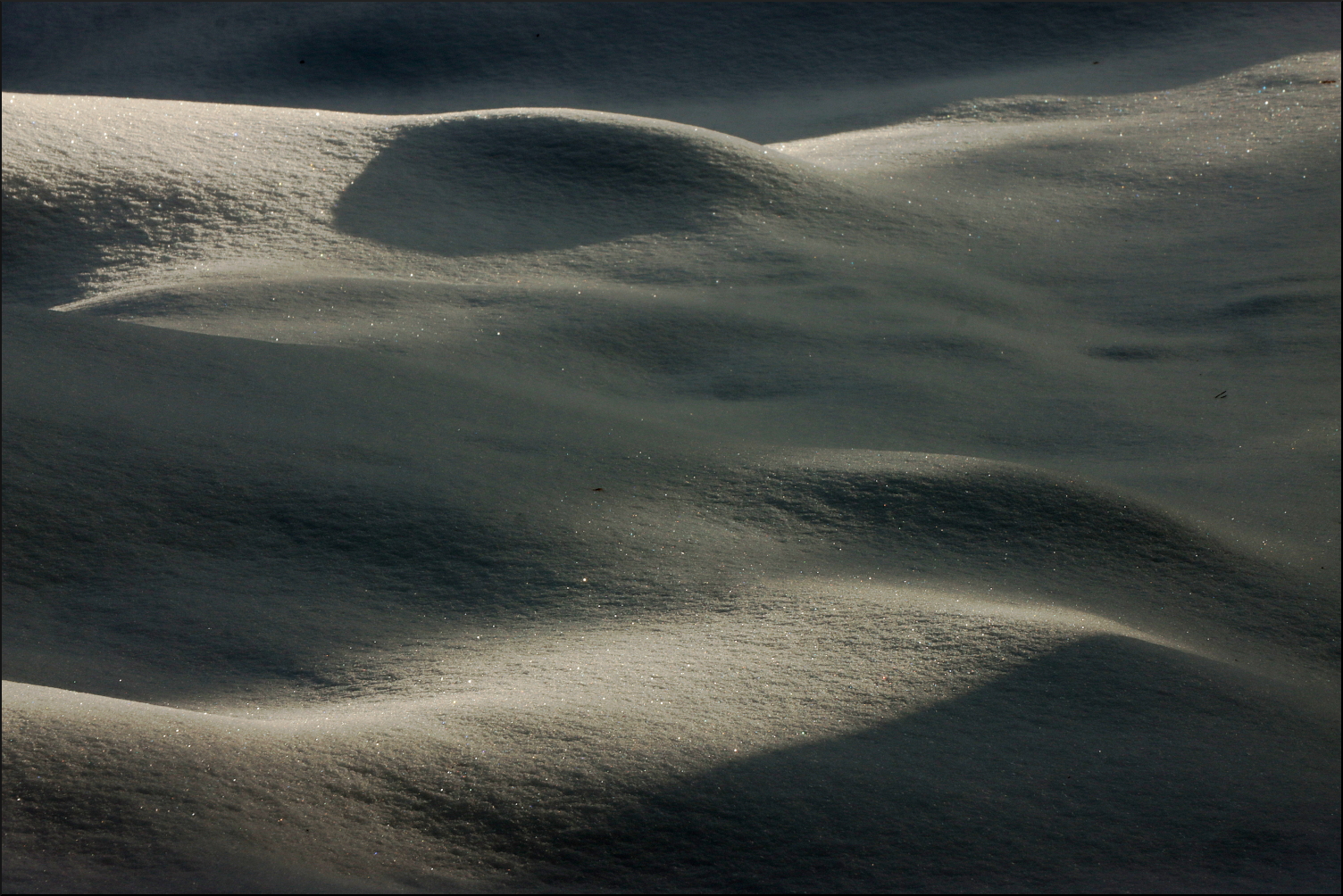 Sen skiftar snön hela tiden i nyanser, egentligen aldrig vit, endast reflekterande sol, himmel och miljön runtomkring den befinner sig i. Vid en första anblick verkar snön vara ”vit som snö”. Men sen börjar man kisa lite med ögonen och upptäcker skiftningar och andra färgskalor. Fantasin kanske tar vid, snöblindheten och gnistrande reflexer lurar ögonen som försöker hitta rätt. Vad är rätt eller fel när man skall försöka återge snön i bild. Minnet sviker snabbt exponeringsögonblicket och experimentet med att tolka dess uttryck hittar inte vägs ände. Det blir till slut något helt annat, ljus och struktur finns där i grunden, men tidpunkt och plats blir en helt annan.