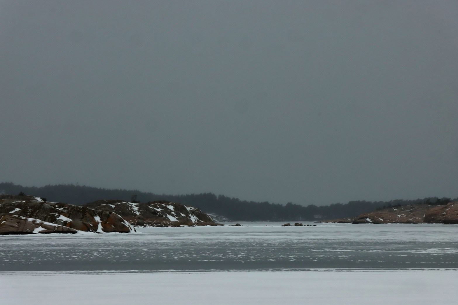 Följde den istäckta strandkanten på skör saltis. En räv hade varit modigare och gått lite längre ut. Regnet bildade små smältvattengölar där isen släppt taget från land ibland. En första antydan till bottenkontakt kunde skönjas när havet trängde sig upp ur små hål och isvakar. En vårkänning infann sig under några korta minuter innan det vid horisonten avlägsna lågtrycket från väster förvarnade mig med en snabb vindökning.