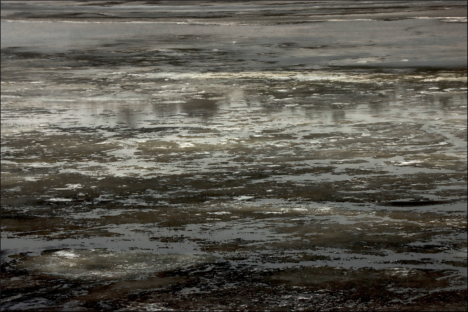 En måttlig mild sydvästlig vind drar med sig dimman och löser upp den i små låga moln för att sen måla hela himlen blå, så viken byter karaktär fullständigt. Vinden väcker liv i de öppna vattenytorna, bryter is och sänder en signal till de större fåglarna.