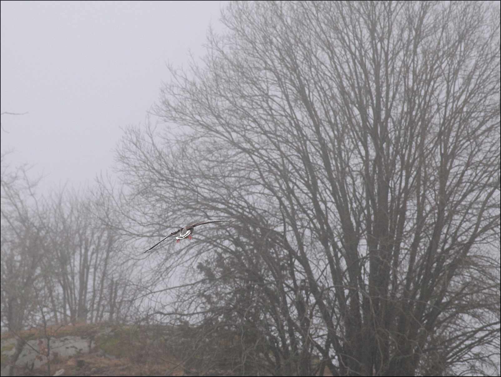 Första halvtimmen i ”min” vik, tjock dimma och ingenting syntes i vattnet som tinat fram ur den ruttna havsisen. Enstaka osynliga grågäss kunde höras förbiflygande, oklart om de såg nåt själva. Himlen ljusnade mot norr och några blekblå fläckar visade sig. Det var signalen till de sånglärkar som suttit och tryckt. Lärkdrillar hördes högt över viken, fylldes på och tonade ut mot norr. De var tillbaka och redan på väg längre norrut. Är dess flyktsång så vacker eller tar nostalgin över, efter möte på möte i mars varje år med den gladaste fågeln jag vet. Inte konstigt att man då själv drar på smilbanden.