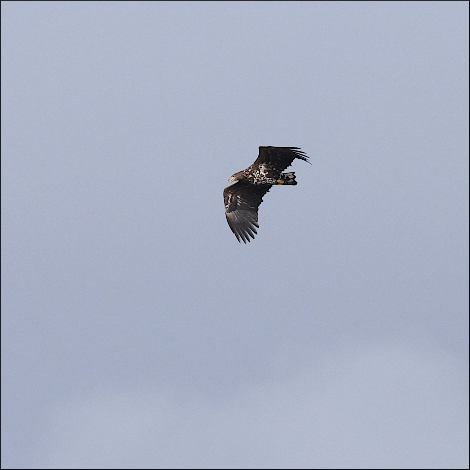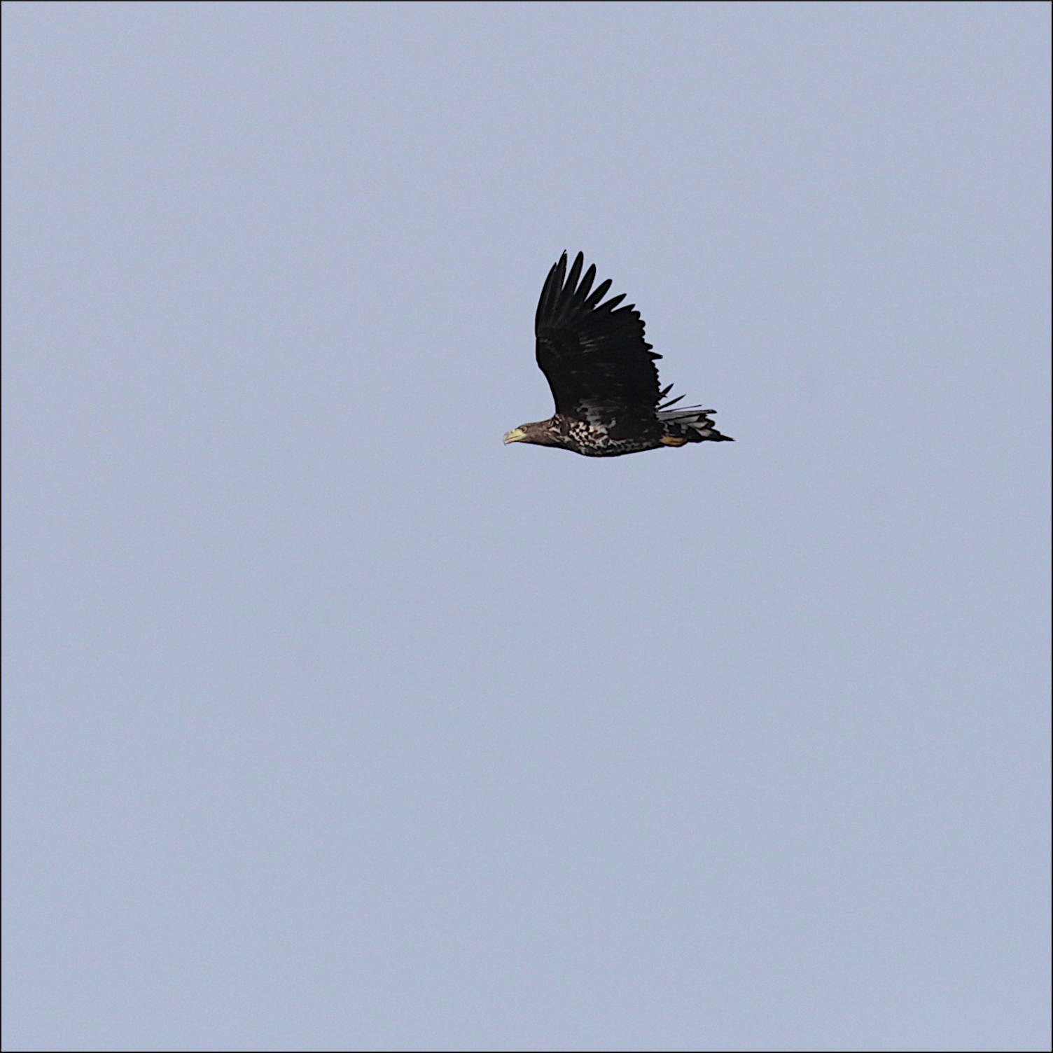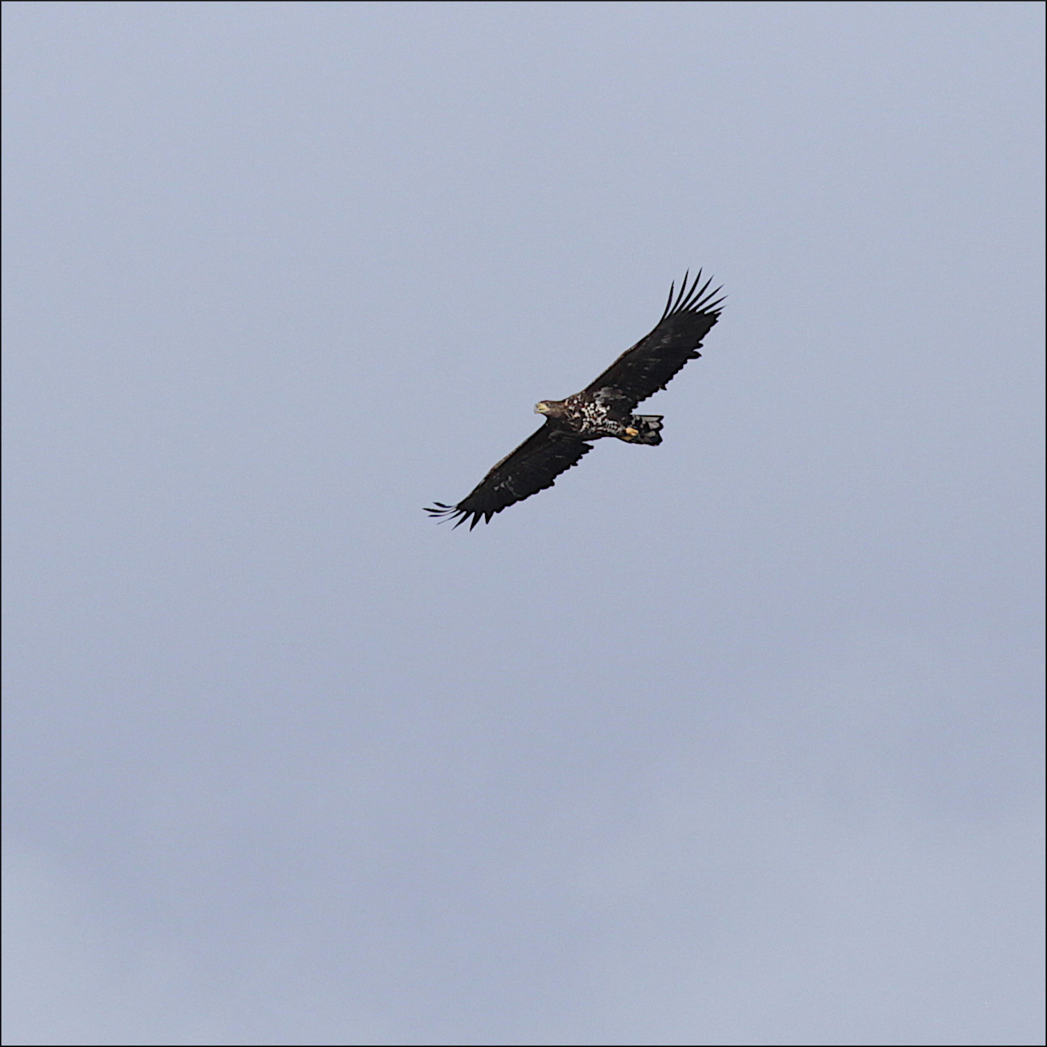 Den unga havsörnen kom snabbt norrifrån, över skogen på berget på andra sidan viken. För långt bort för de där fantastiska bilderna som fågelfotografer eftertraktar, genom att sitta timvis i ett gömsle vid en åtel. Men här måste den unga örnen lära sig själv nu, oavsett om den bara är här tillfälligt eller har kommit hem till området den föddes i.