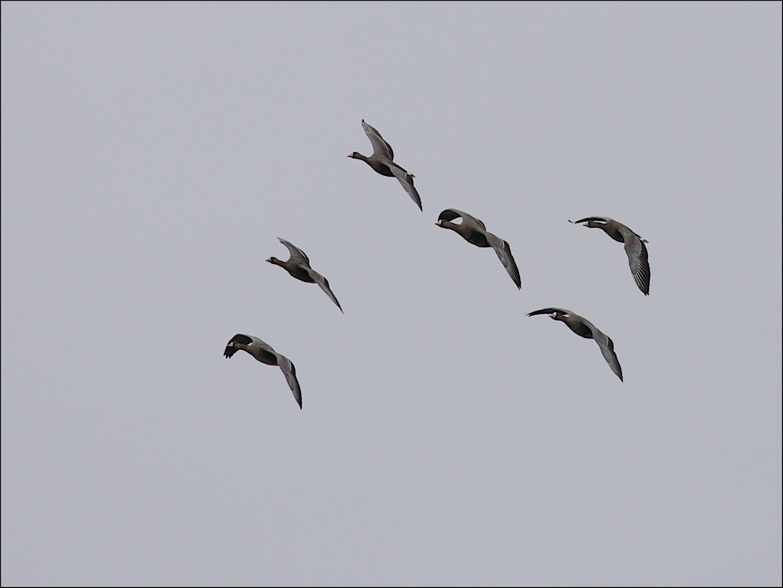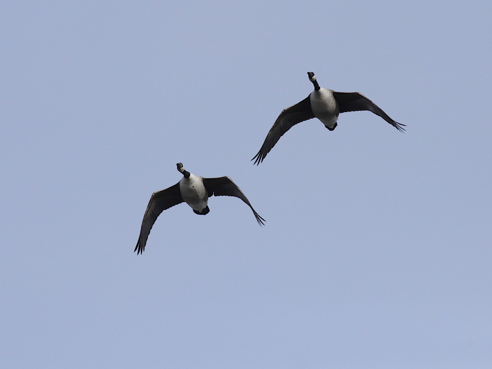 Varningslätena från gässen är annorlunda. Kanadagässen låter ännu mer hesa och bläsgässen formerar sig tätt och går nästan upp i falsett tillsammans. Grågässen däremot har nästan börjat vänja sig vid den nästan två meter breda silhuetten och lyfter bara kort för att snart vara tillbaka vid det pågående bobygget på ängen.