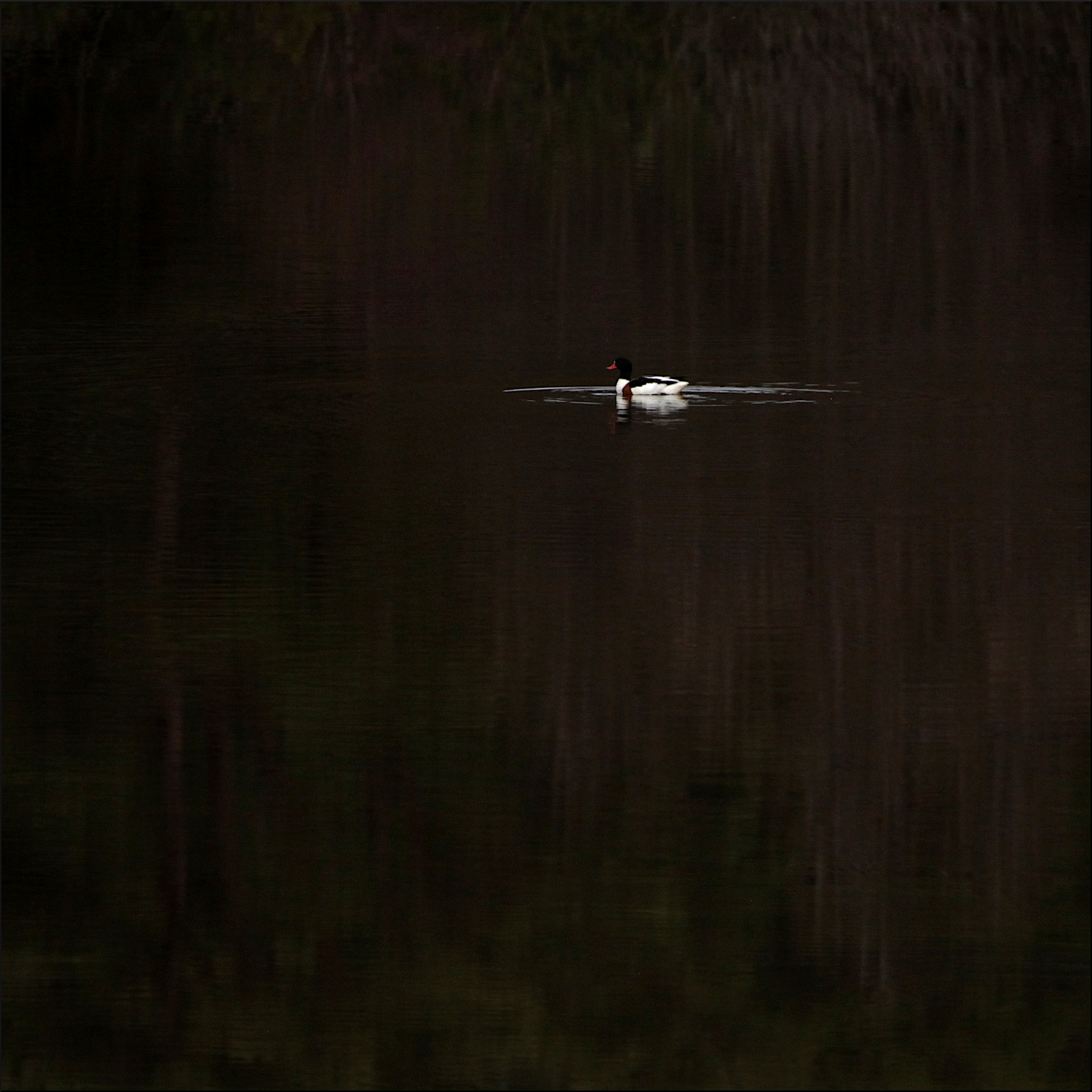 Dagen som började lite i moll med en silhuett av kraxande korp som inte uppskattade min närvaro på morgonen får avslutas med en gravand som funnit sig till ro i skydd av skogskantens dunkel. Vi ses snart igen!