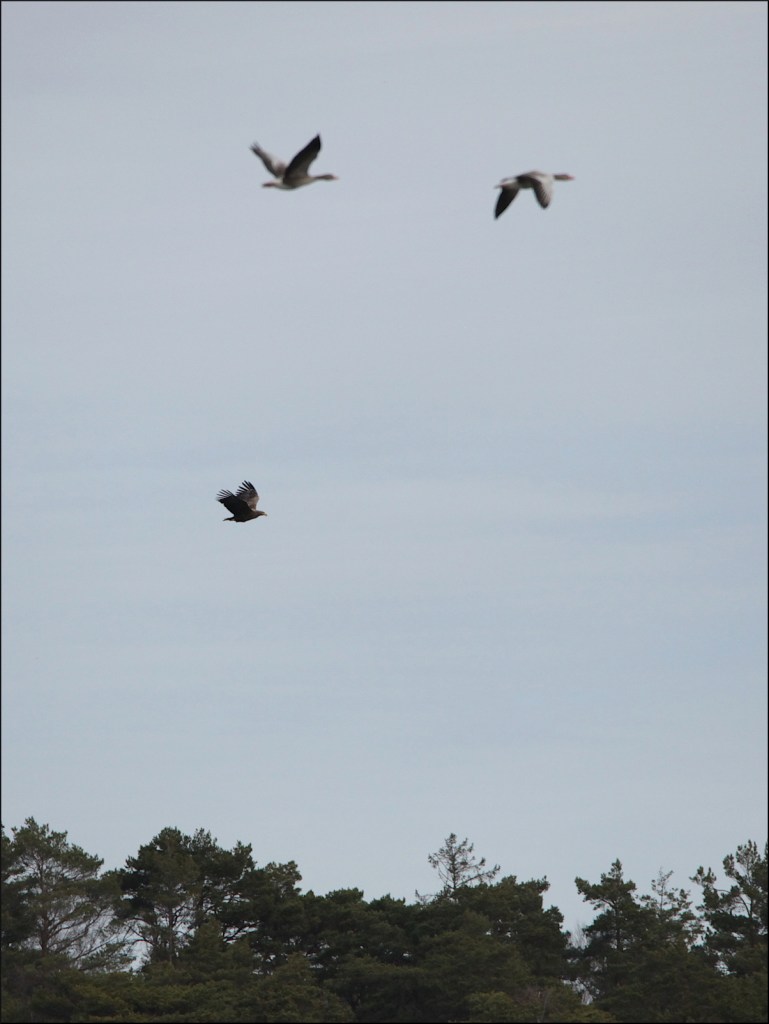 En yngre havsörn dök också upp snabbt vid ett tillfälle, lågt över havet där ejdrar, knipor och skrakar brukar hålla till, och försvann lika snabbt.