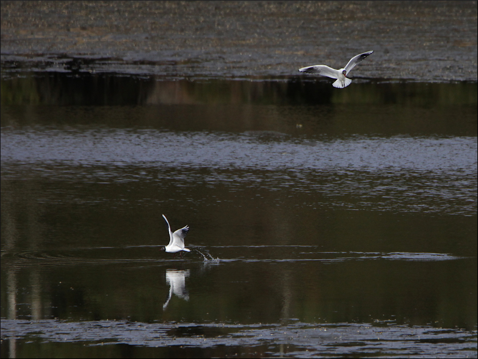När det var fritt fram så valde några grågäss att landa i öppet vatten. En uppvisning hur en gåskropp smidigt kan trotsa den oundvikliga tyngdlagen, kraftigt dra i vingarnas nödbroms och surfa på fötterna sista biten. De fick snart sällskap av några glädjespridare med chokladbruna huvuden. Årets första skrattmåsar stannade till en stund i viken och letade småfisk i ytan. De hade tidvis sällskap av de första fiskmåsarna som börjat anlända också. Alltid lika trevligt att höra dem samspråka om hur vintern varit i södern.