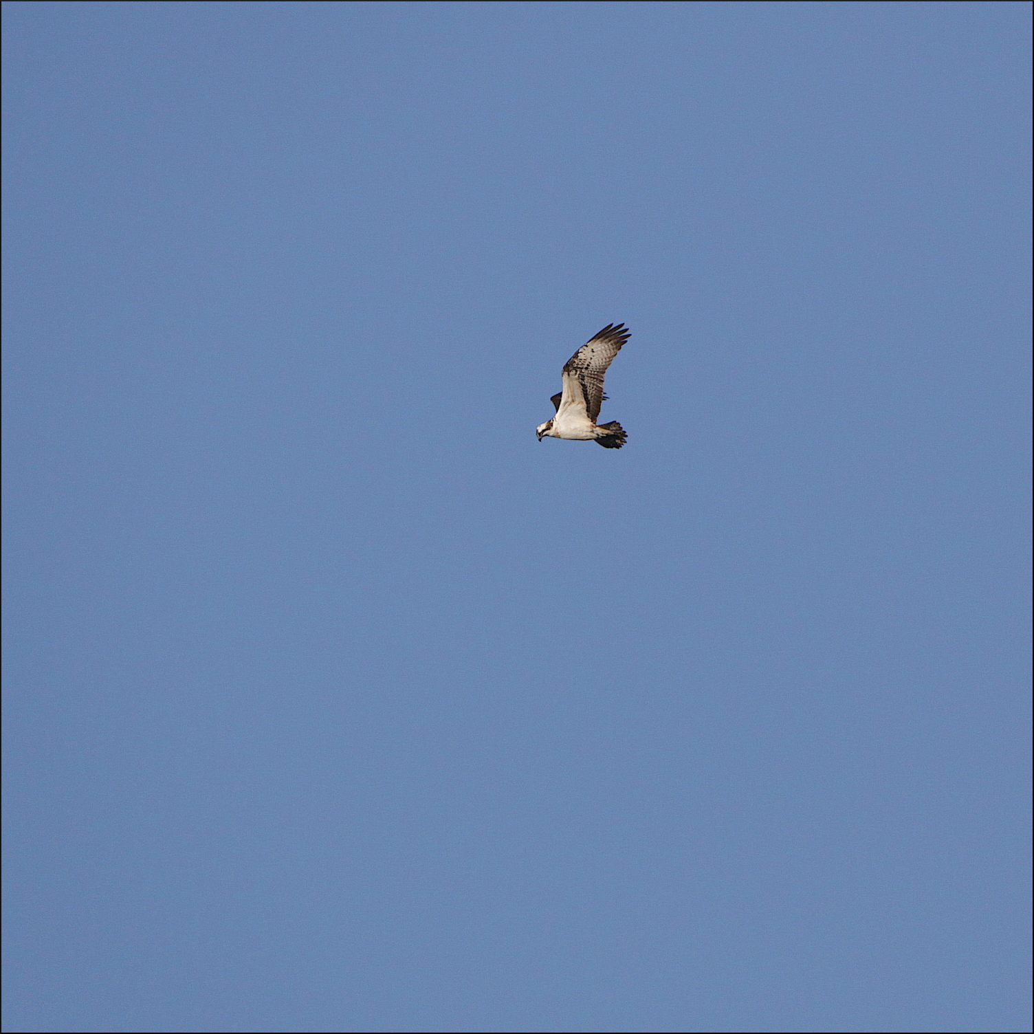 Får syn på en ”vitfågel” som blänker till på långt håll i luftrummet över andra sidans strandkant. En av anledningarna till att jag sitter här ikväll, i början april, visar upp sig i det skarpa kvällsljuset. Fiskgjusen har återvänt. Det är, sånär som på en vecka, sex år sedan som jag först fick stifta bekantskap med den fantastiska fiskaren här på samma plats. Den fick mig att starta bloggandet på allvar och pryder därför också bloggens förstasida.