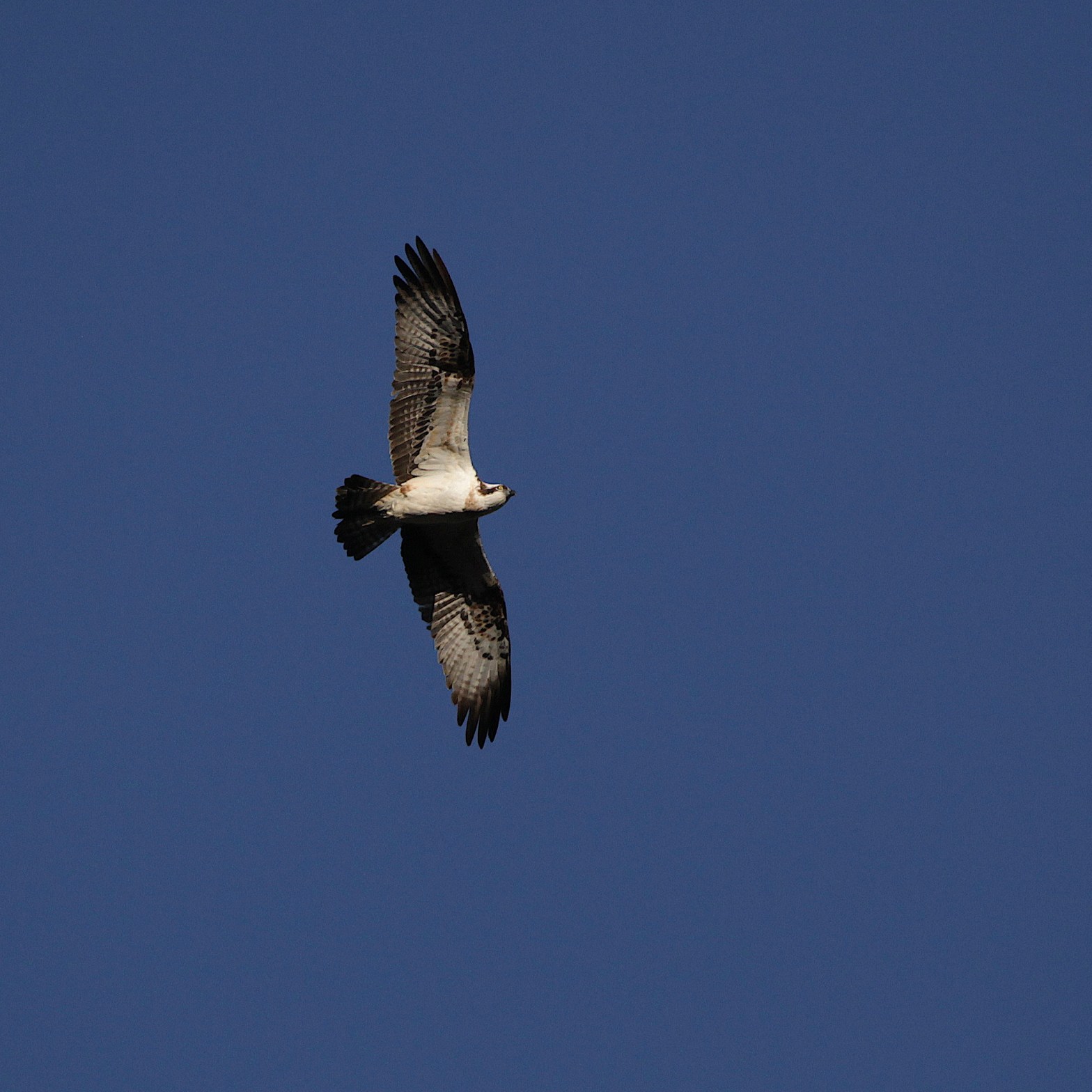 Får syn på en ”vitfågel” som blänker till på långt håll i luftrummet över andra sidans strandkant. En av anledningarna till att jag sitter här ikväll, i början april, visar upp sig i det skarpa kvällsljuset. Fiskgjusen har återvänt. Det är, sånär som på en vecka, sex år sedan som jag först fick stifta bekantskap med den fantastiska fiskaren här på samma plats. Den fick mig att starta bloggandet på allvar och pryder därför också bloggens förstasida.
