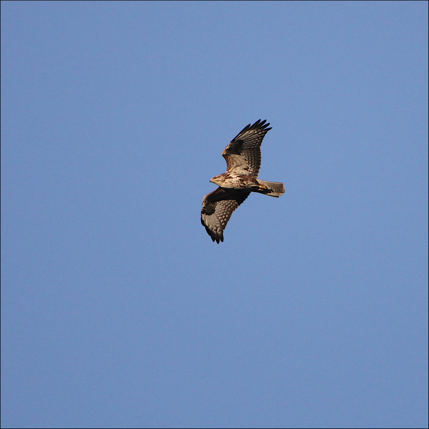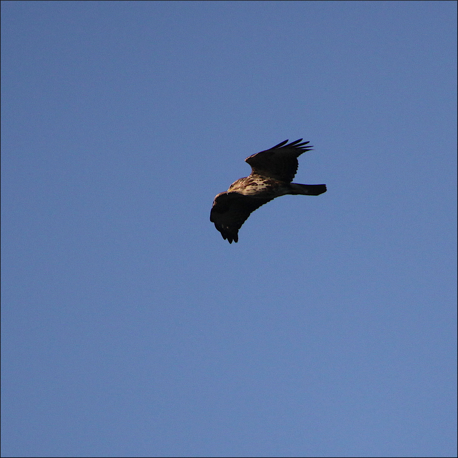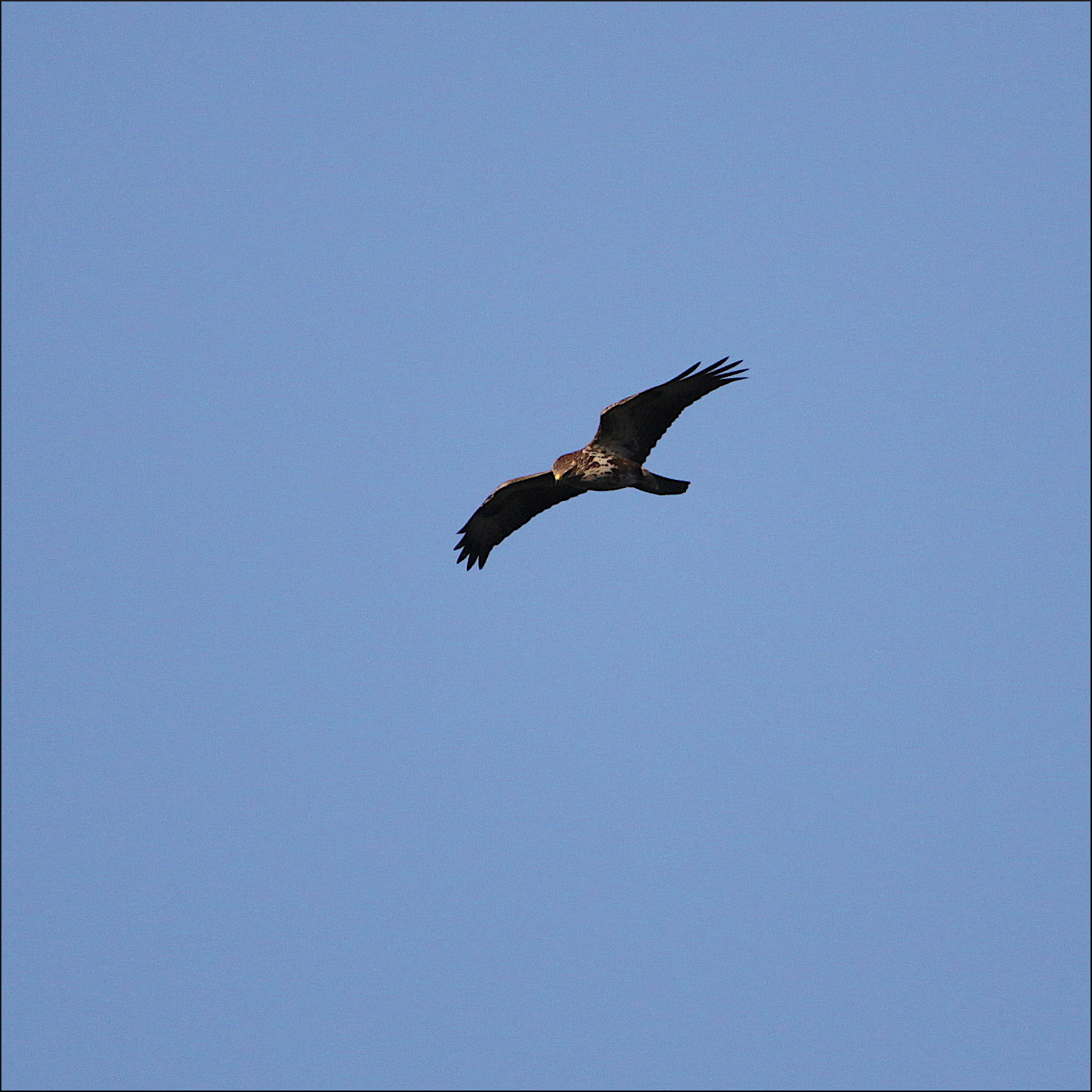 En rovfågel kommer åter in över skogen på andra sidan, snett mot mig. Misstar den på håll först för en kärrhökshona med sina smala och vinklade vingar. Men ljuset lurar mig och den lätta motvinden får den att flyga annorlunda. Så snart den vinklar upp vingarna inför min åsyn blir det tydligt att en sen ormvråk är ute på jakt efter kvällsaktiva smågnagare. Kärrhökarna får vänta på sig tydligen.