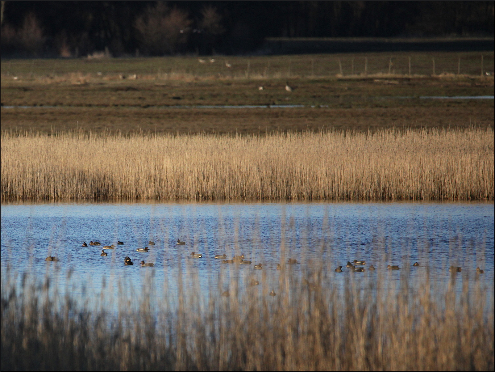 På de översvämmade delarna längst in i viken har ett flock på knappt fyrtio krickor samlats. De språkar högt och gällt på sitt eget sätt, återkommande hörs artnamnets inledning ”krick-krick” bakom vassen. Flocken löses upp utan synbar anledning där några låter kvällsbrisen föra dem vilande ur viken mot andra sidans strand. Andra tar till flykten och sveper runt ett varv innan de kollektivt fattar ett beslut om riktning.