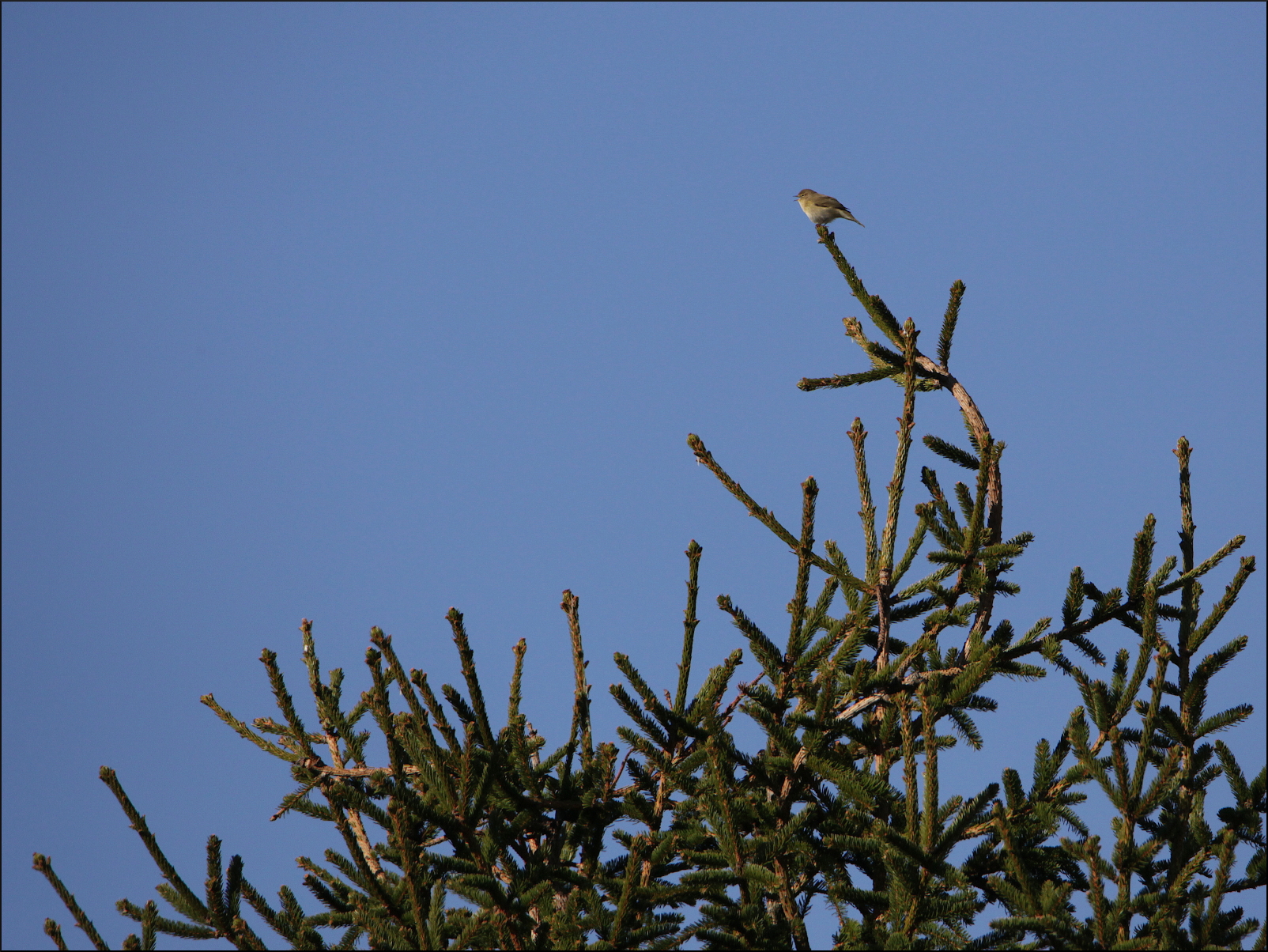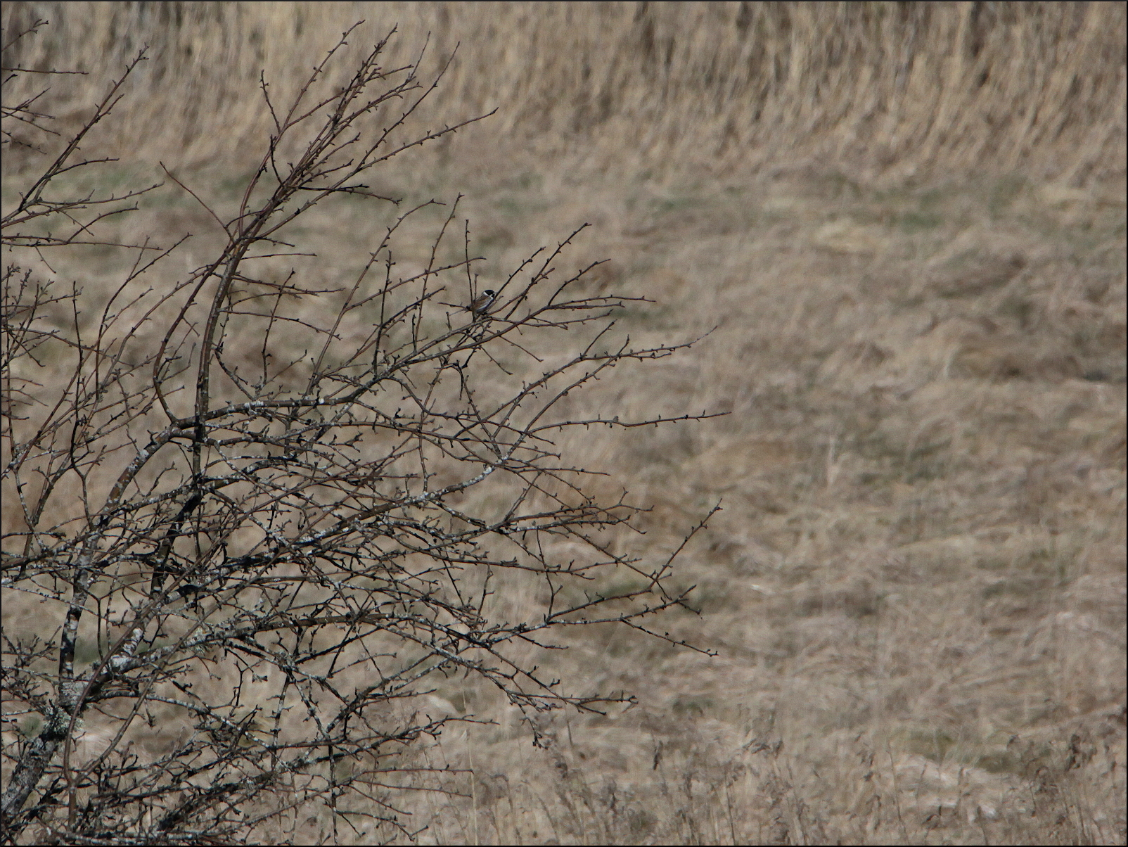 Denna första dag var ett test för att se om platsen kunde fungera, kanske främst fotomässigt. Avståndet är ganska långt ner till ängarna och vassen, där min förhoppning är att få se kärrhöken jaga tätt över marken. I skogen bakom och upp mot berget är det gott om fågel. En sångare i en gran, alltså en gransångare, höll mig sällskap under förmiddagen. Den fick lite senare byta plats då årets första järnsparv intog toppen med sitt gnisslande. I de få buskar som finns på ängen satt faktiskt en sävsparv och sjöng också. Långt i norr, över centrum av staden, kunde jag ta några suddiga sekvensbilder på en ung havsörn som sträckte vidare. Några grågäss som brukar hålla till ute i havsviken reagerade tidigare, antagligen då örnen gick över.