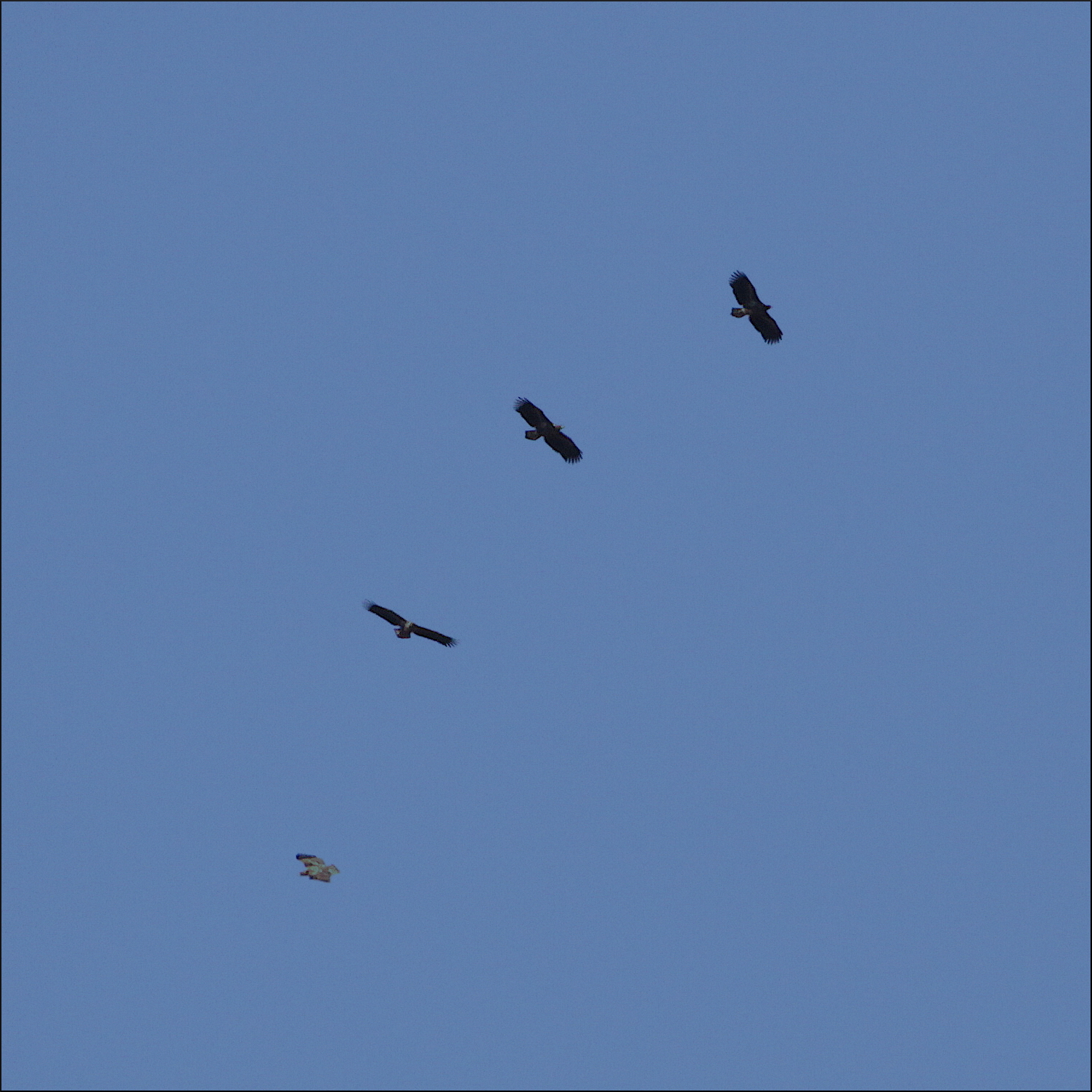 Kärrhöken dök aldrig upp, även om jag sett dem här tidigare år och jag vet att de kom redan för en vecka sedan till trakten. Uppe på berget bakom mig hördes istället en ormvråk skrika då och då, tror bestämt att det finns ett häckande par där. De är lite försiktiga, då jag sitter helt öppet, men en av dem med en vacker chokladbrun teckning visade sig ibland. Fler hördes även från andra sidan stora vägen. Nytt försök i morgon.
