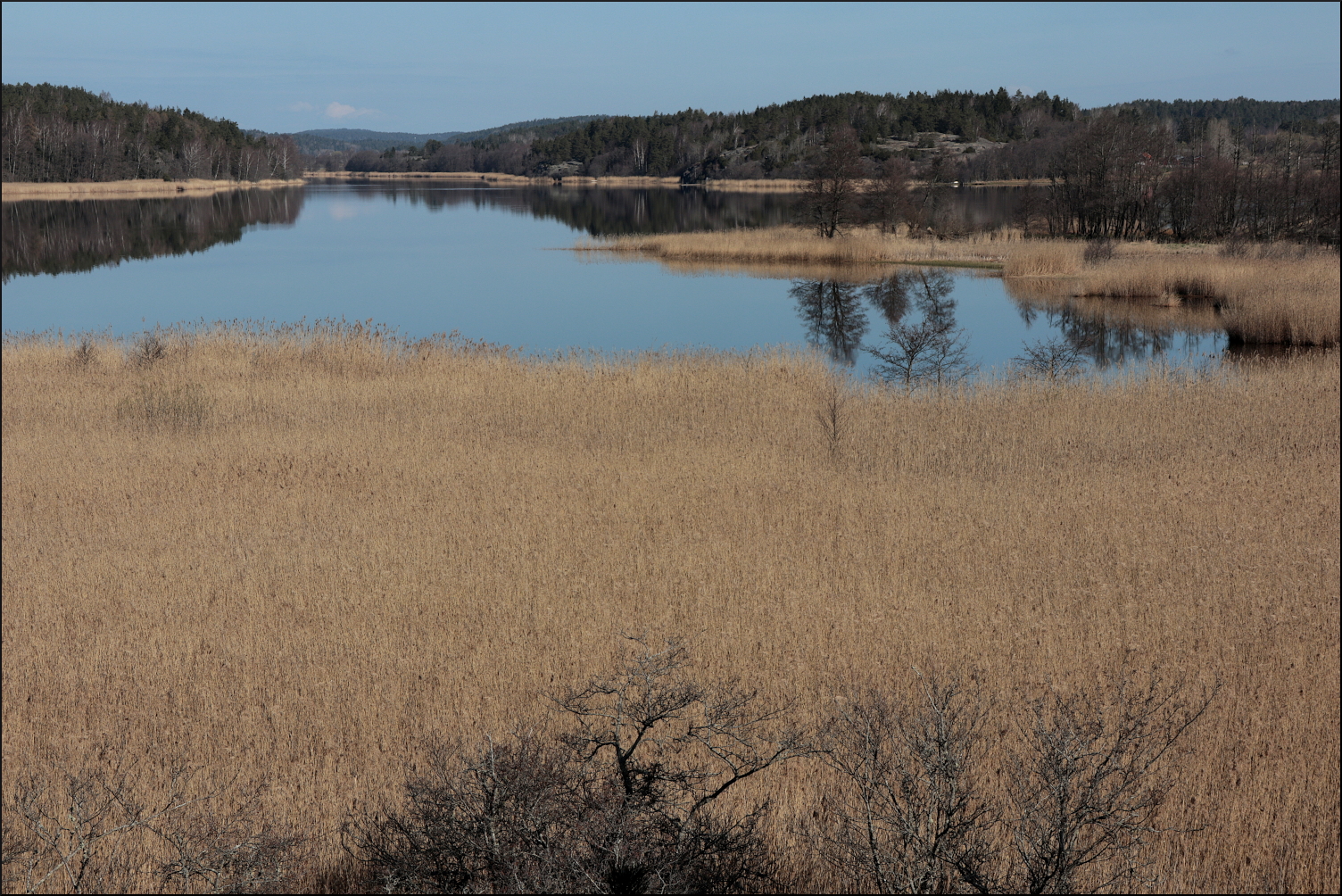 Zorro har varit väldigt ofta vid en plats ca 200 meter från min observationsplats på klipphyllan. Ett lite mindre vassområde nära Vättlandsåns utlopp i sjön. Gräddvinge har ibland följt med och ena dagen fick jag se varför. De hade startat upp bobygget i vassen. Såg endast Zorro bidra till byggnationen. I perioder kom han frekvent först med långa smala kvistar, sedan med långa vasstrån och senaste dagen mycket mindre material. Tillräckligt långt bort från mig så jag inte stör, tyvärr svårt att ta bilder med kvalité. Desto mer njutbart att bara sitta och studera allt i kikaren.