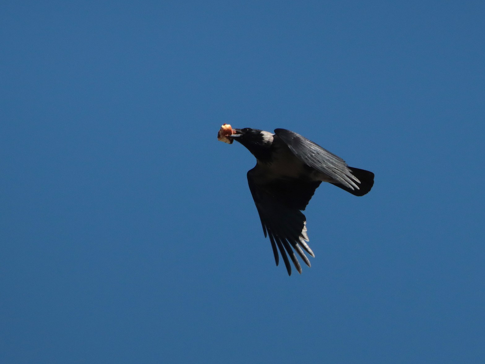 Trädgårdstider är tid ute i sol och värme, fika på altanen och ett ypperligt tillfälle för de observanta kråkfåglarna att ta del av ny försommarmeny. Kan nog med stor säkerhet säga att munsbiten tillhör familjen kanelbullar, närmare bestämt Pågens kanelsnäckor. Fågeln är en ovanligt företagsam vanlig gråkråka.