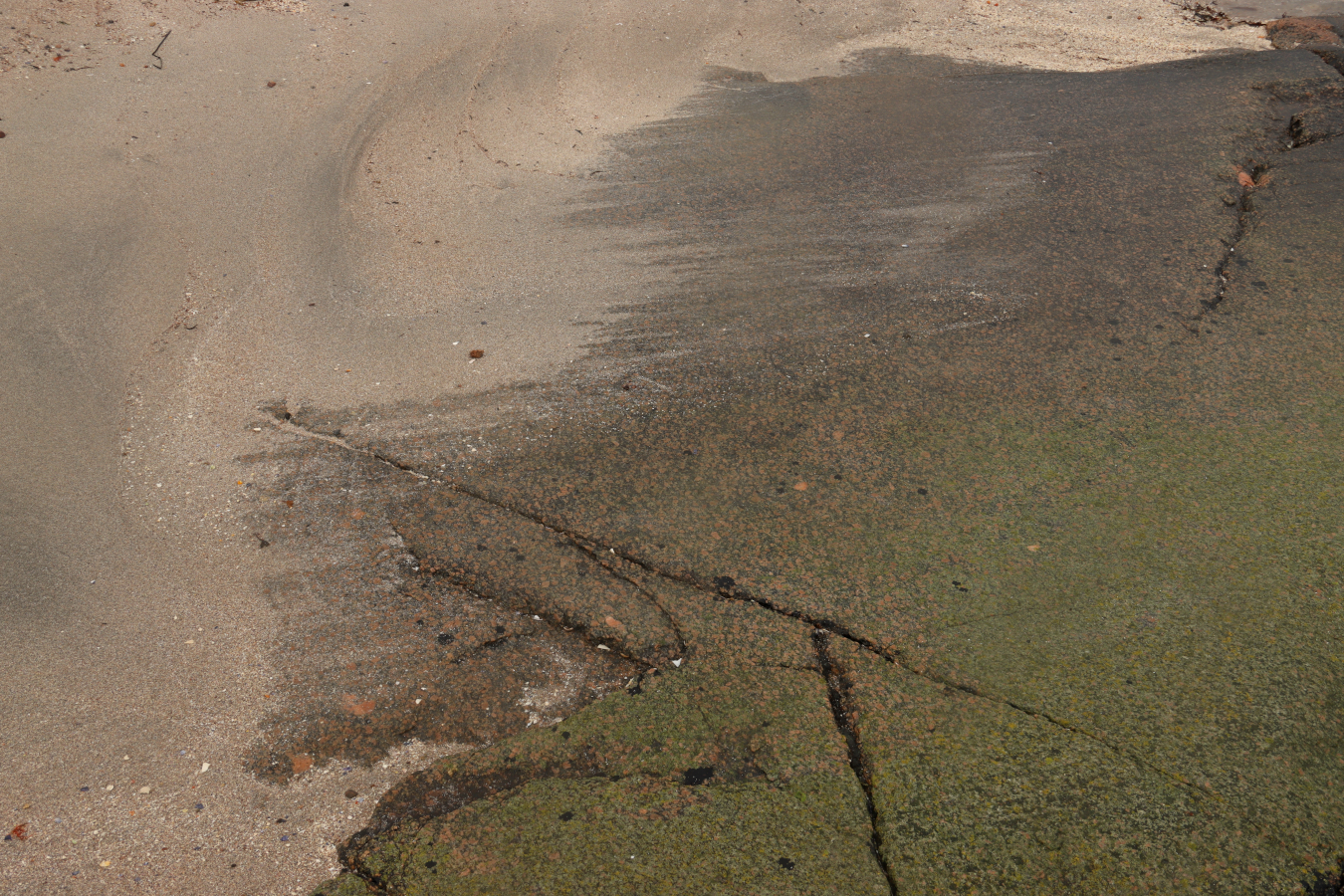 Isräfflor och jättegrytor hittar man ofta på klipporna, vilka utgör spår av istider. Tyvärr hittar man fortfarande också uppspolade rester av oljeutsläpp från tankers. På de flacka och grundare delarna, bildas hällkar med vatten, med egna ekosystem beroende på salthalt och vattenståndets påverkan. Mineraler löses upp och vattnet färgar klipporna. Sand tillförs från djupare partier vilket gynnar små blötdjur, snäckor och strandalger.