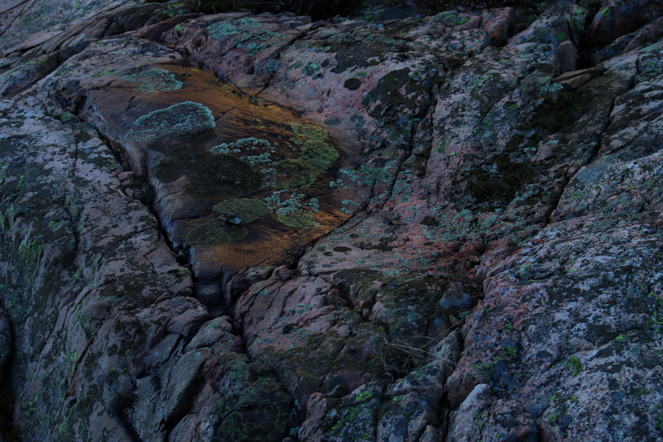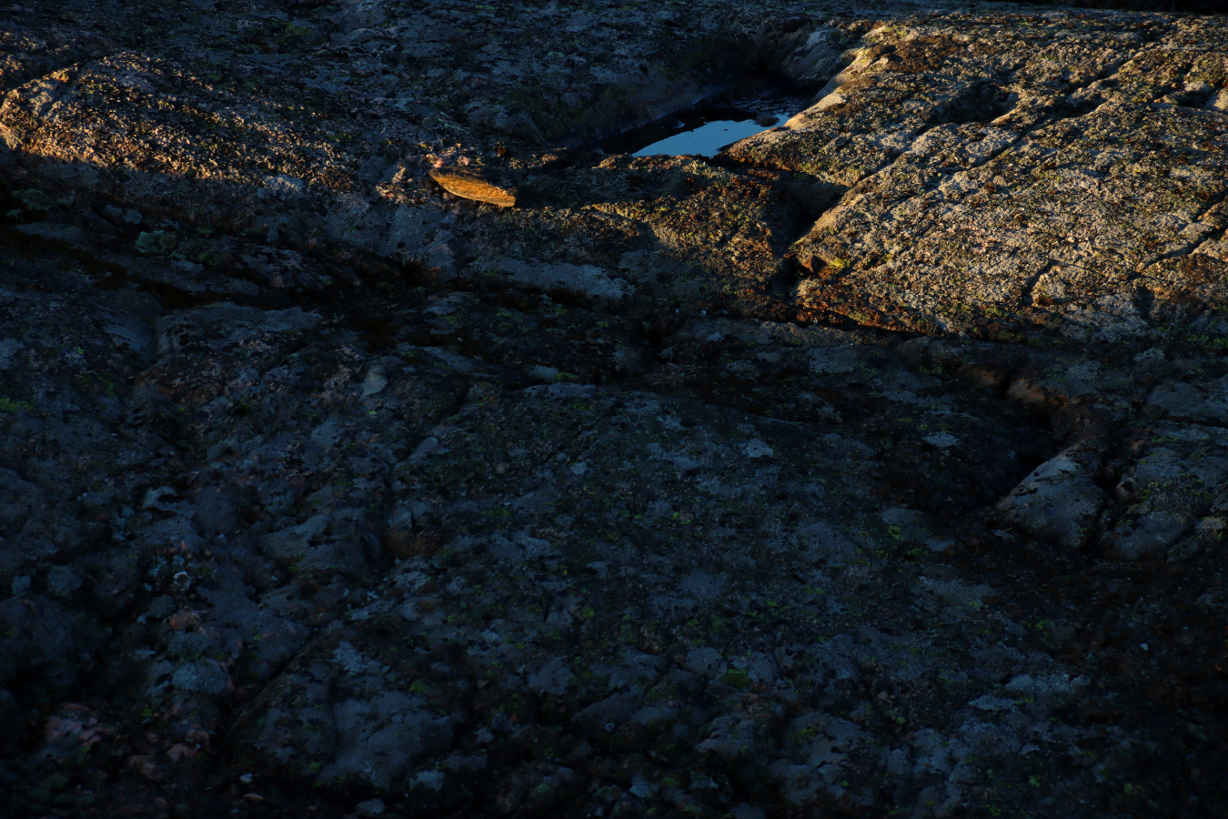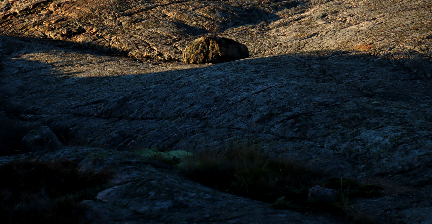 Fast berg under fötterna kan vara skönt när man trampat runt i skog, mosse och buskage utan att se var man har sina fötter ibland. Det är inte bara stabilt i nuet utan känns tryggt att återkomma till. Årmiljonerna har gnuggat lite på ytan, isen har skrapat och rynkor har skapats, men innehållet är detsamma. Bergarternas vackra färger kamoufleras lite diskret av lav, endast brottytor lyser klart blanka i det reflekterande ljuset i skuggorna. Berget vilar och bidar sin tid långsamt, bara vi inte har för bråttom mellan punkt A och B på makadamfyllda motorvägsmattor.