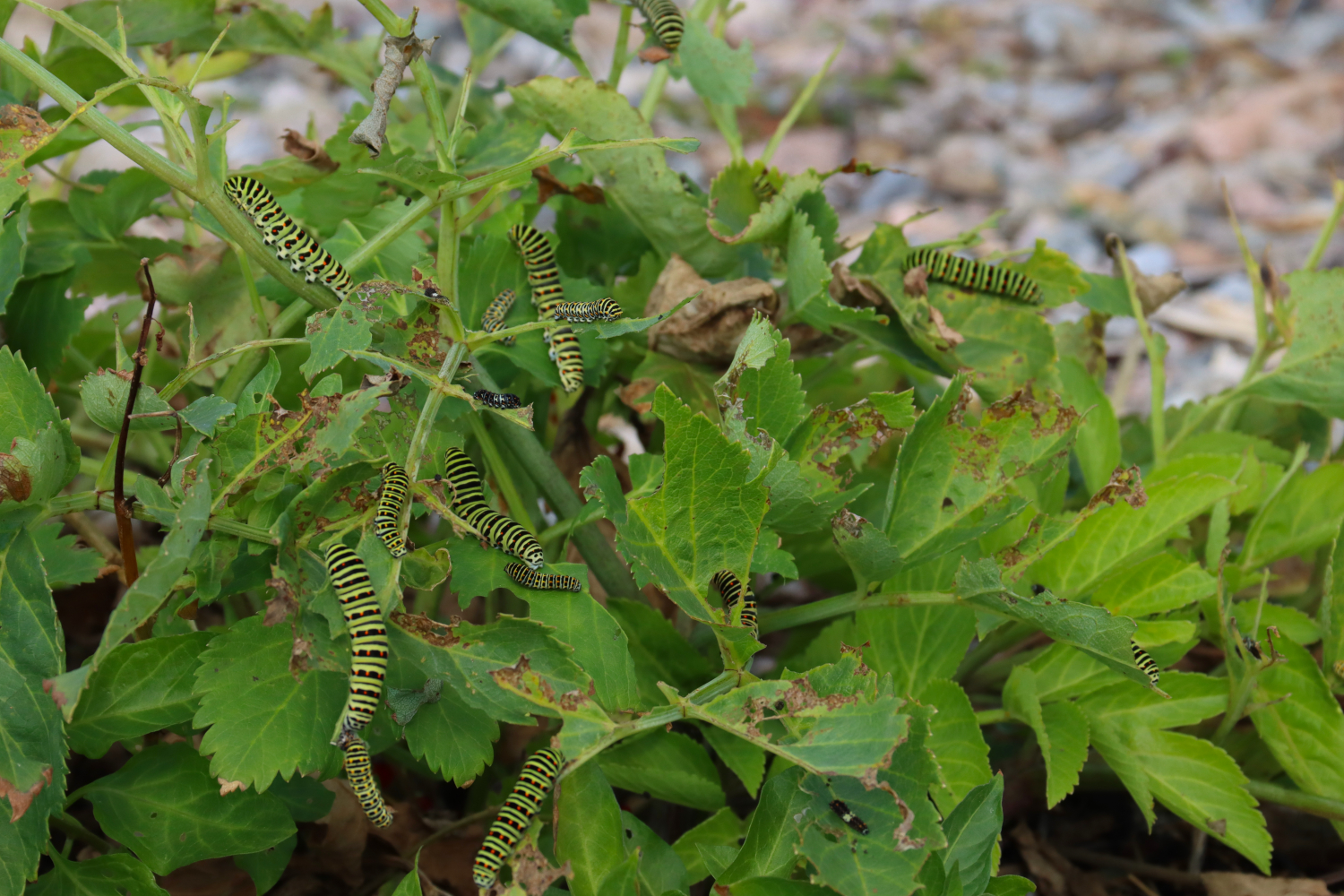 Nu återstår att se hur många av dessa som lyckas förpuppa sig så sent i september innan nattfrosten slår till. Närheten till havet kommer dock att gynna kolonin. Blir intressant att se var de kommer att fästa upp sig som puppor, på värdväxten vid mark eller kanske dolda bland stenar i skydd mot regn och storm. Till våren kryper de förhoppningsvis ut och förvandlas till enligt min mening Sveriges vackraste fjäril. Vi får väl se om det blir en fortsättning på sagan …..