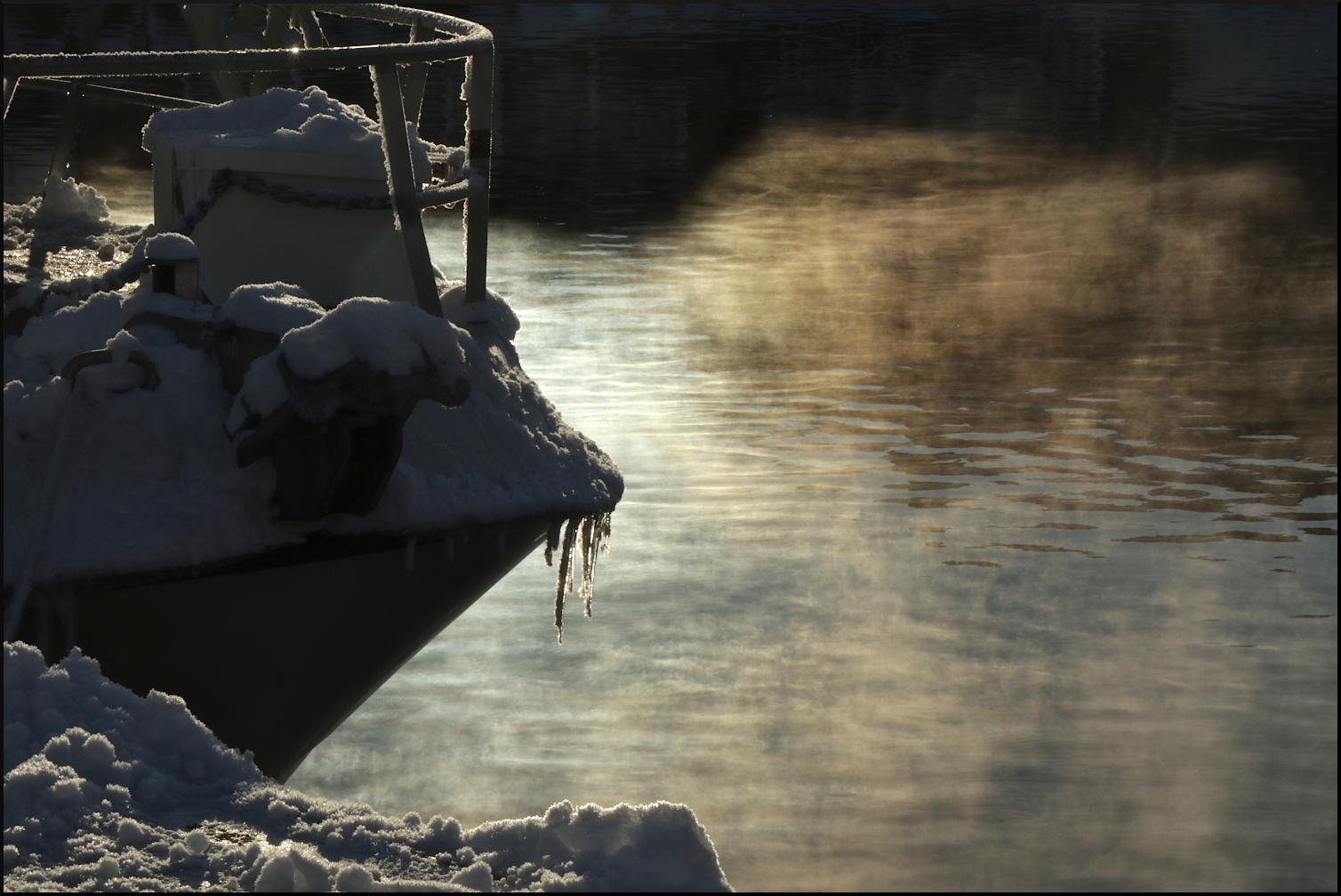 - Väderlek: Gråmulet, måttlig ostlig vind, temp -2, is och snöfläckar