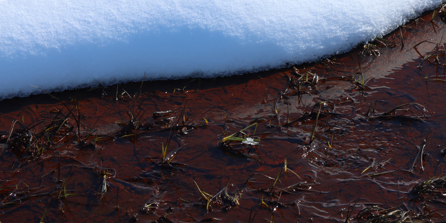 Vissa delar av myrarna fryser aldrig helt, varm ånga tränger upp och skapar andningshål för den pågående nedbrytningen i mörkret.